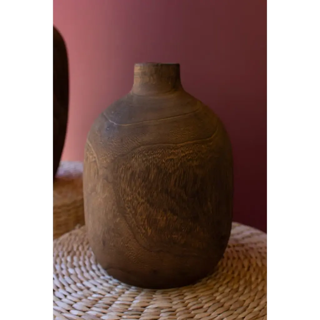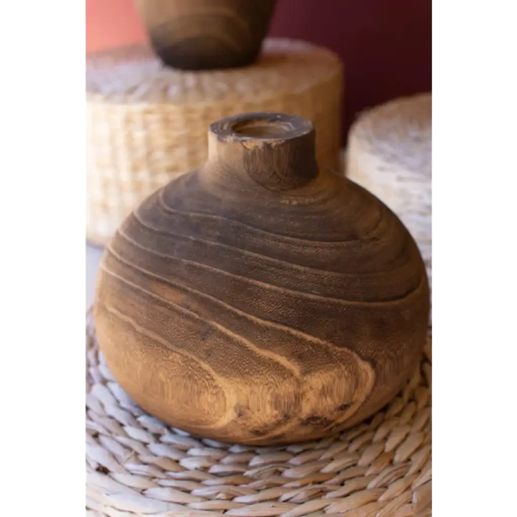 Fieldman Set Of Three Wooden Vases - Brown Finish