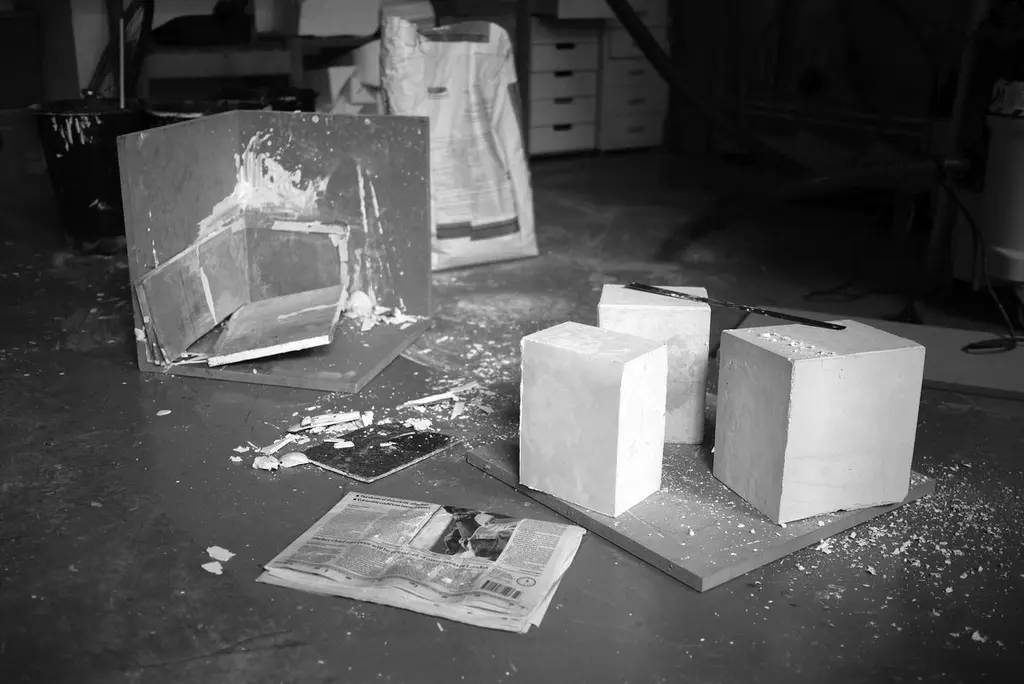 Crockery White, 1882 Ltd. with Max Lamb. A collection of fine bone china tableware slip-cast from plaster models carved by hand, with glazed interior for functionality and raw exterior reflecting the modest surface texture of the plaster original. The process of slip-casting begins with the creation of a three-dimensional model of the design known as a master by a professional model-maker, from which the production mould is cast. Crockery bypasses this process by placing the responsibility of both designer and model-maker in the hands of Max Lamb. Using the tools of a stone mason Max chips and carves a solid block of plaster to make a series of tableware, the design of each formed quite simply out of their own making.