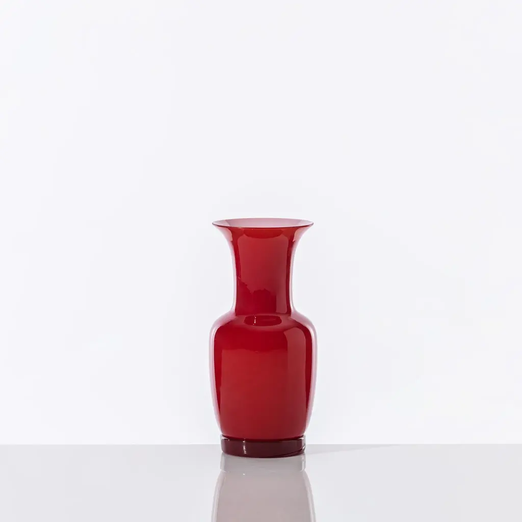 Elegance has no excess, no frills, no illusions. Elegance is purity, it is essential and perfect lines. Refined colors capable of getting noticed for their delicacy. Elegance is a hand-blown glass vase that never reveals its age and that for over eighty years has been present in exhibitions and publications all over the world. Elegance has a synonym and it is Opalino.
