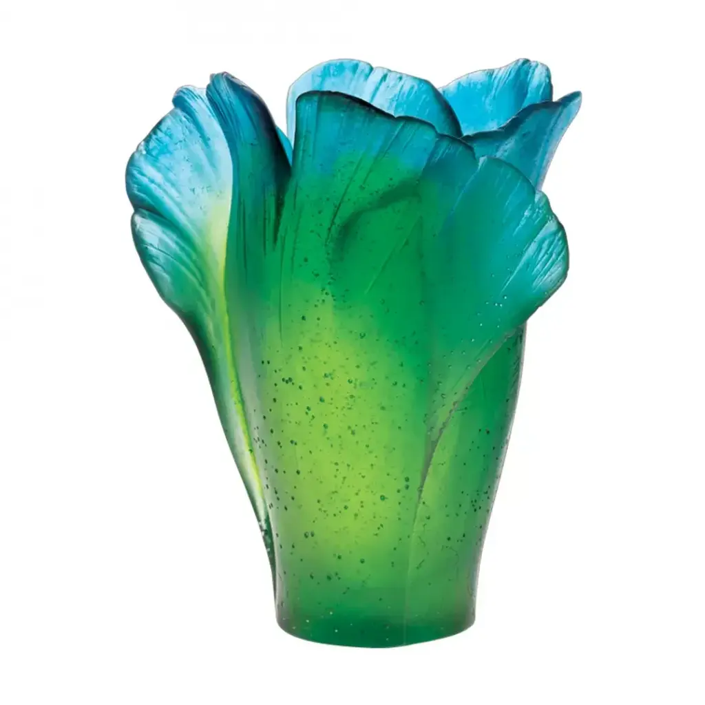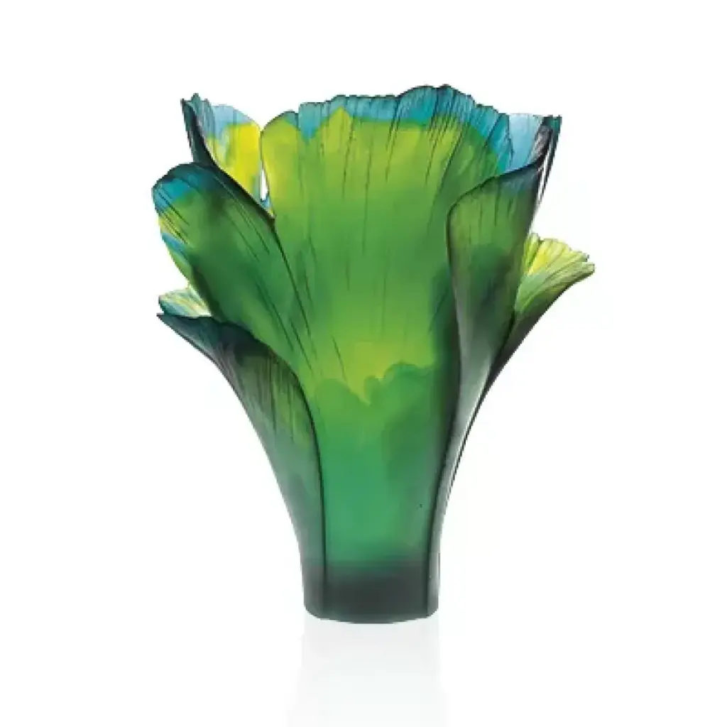A vase adorned with precious gold leaf finishes. The ancestral technique of applying gold leaf by hand is realized in our ateliers.