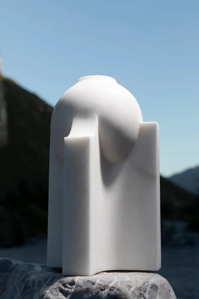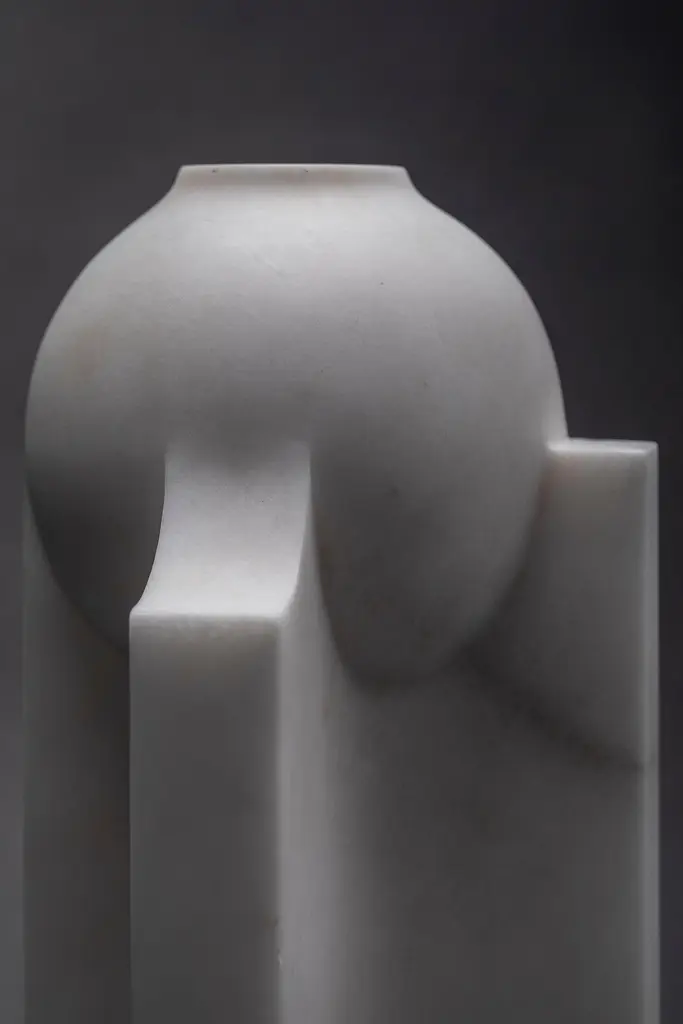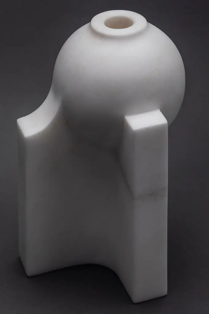 Florero Bola Galeana vase by Jorge Diego EtienneLimited Edition of 10 + 1 APDimensions: D 15 x W 15 x H 24.2 cmMaterial: alabasterGaleana is a collection of 6 objects designed by Jorge Diego Etienne and sculpted in alabaster by the Master Craftsman Francisco Charles. Through its materiality, subtraction and transformation, the collection examines the context and origin of alabaster in Galeana, Nuevo León, resulting in pieces that generate a regional and emotional bond.Jorge Diego Etienne is a passionate Mexican industrial designer with a global perspective on design. He obtained a degree in Industrial Design from Tecnológico de Monterrey in 2009 and in 2011, in addition, he participated in the "Modern Design and Traditional Crafts" program organized by the Japan International Cooperation Agency in Kyoto, where he investigated and experimented with the intersection of cultural objects with contemporary products.His focus is on creating objects that combine cultural and artisanal processes with new trends, technologies, and materials to create memorable experiences through them.By studying, understanding and resignifying traditions, Jorge Diego seeks to recontextualize them in our contemporary daily life. An important part of his projects is the transmission of information relevant to the conditions of the time and place in question to propose new paths of prosperity.His work has been included in exhibitions in Mexico at the Museum of Modern Art, Zona Maco contemporary art fair, National Center for the Arts, Abierto Mexicano de Diseño, and international exhibitions; Contemporary Furniture Fair ICFF in New York, Maison & Objet in Paris, and the Ibero-American Design Biennial in Madrid, and museums like the Craft and Folk Art Museum of Los Angeles.Besides running his Design Studio in Monterrey, Jorge Diego is the National Director for the Design Program of the Tec de Monterrey.