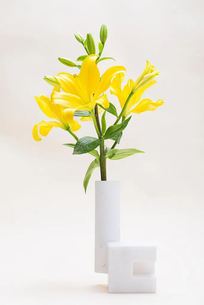 Florero Tubo Galeana vase by Jorge Diego EtienneLimited Edition of 10 + 1 APDimensions: D 11.5 x W 11.5 x H 21 cmMaterial: alabasterGaleana is a collection of 6 objects designed by Jorge Diego Etienne and sculpted in alabaster by the Master Craftsman Francisco Charles. Through its materiality, subtraction and transformation, the collection examines the context and origin of alabaster in Galeana, Nuevo León, resulting in pieces that generate a regional and emotional bond.Jorge Diego Etienne is a passionate Mexican industrial designer with a global perspective on design. He obtained a degree in Industrial Design from Tecnológico de Monterrey in 2009 and in 2011, in addition, he participated in the "Modern Design and Traditional Crafts" program organized by the Japan International Cooperation Agency in Kyoto, where he investigated and experimented with the intersection of cultural objects with contemporary products.His focus is on creating objects that combine cultural and artisanal processes with new trends, technologies, and materials to create memorable experiences through them.By studying, understanding and resignifying traditions, Jorge Diego seeks to recontextualize them in our contemporary daily life. An important part of his projects is the transmission of information relevant to the conditions of the time and place in question to propose new paths of prosperity.His work has been included in exhibitions in Mexico at the Museum of Modern Art, Zona Maco contemporary art fair, National Center for the Arts, Abierto Mexicano de Diseño, and international exhibitions; Contemporary Furniture Fair ICFF in New York, Maison & Objet in Paris, and the Ibero-American Design Biennial in Madrid, and museums like the Craft and Folk Art Museum of Los Angeles.Besides running his Design Studio in Monterrey, Jorge Diego is the National Director for the Design Program of the Tec de Monterrey.