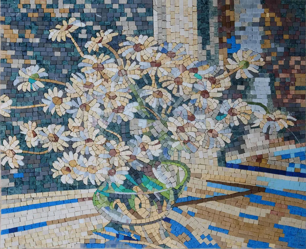 Introducing the Flower Mosaic - The Yellow Bouquet Vase, a stunning piece of luxury stone art that effortlessly combines elegance and masterful craftsmanship. This exquisite handcrafted mosaic showcases a beautifully designed vase bursting with a vibrant yellow bouquet, symbolizing joy and warmth. Meticulously crafted from premium quality natural marble stones, each piece is unique and adds a captivating touch of sophistication to any room. Set against a soothing neutral background, this artwork complements diverse decor styles, making it a versatile and radiant addition to your living space. Whether displayed in a cozy living room, a modern kitchen, or a chic office, the Flower Mosaic serves as a dazzling focal point that enriches your environment with its silky textures and intricate details. Handmade by skilled artisans dedicated to quality and artistry, this mosaic features a carefully selected palette of exotic materials that provide durability alongside stunning color and texture variations. Among these, the vibrant blue Macaubas quartzite stands out with its electric blue radiance and sapphire-like depth, while the shimmering dark blue quartz offers a crystalline, prismatic brilliance. The radiant prisma blue quartz and luminous aqua blue quartz add scintillating, jewel-like accents, enhancing the mosaic's oceanic brilliance and cool-to-the-touch allure. Each stone is expertly arranged to capture the essence of blooming flowers, bringing a breath of fresh air and natural beauty indoors. More than decor, the Flower Mosaic - The Yellow Bouquet Vase is a statement piece that instills positivity and cheer in your home. Its timeless beauty and meticulous detail ensure it remains a cherished part of your collection for years to come. Perfect as a thoughtful gift or a delightful addition to your own space, this premium handcrafted mosaic artwork inspires admiration and conversation. Elevate your living space with the charm, elegance, and exotic luxury of the Flower Mosaic - The Yellow Bouquet Vase. Embrace the artistry and let this incredible masterpiece illuminate your home with nature’s vibrant colors and radiant craftsmanship.