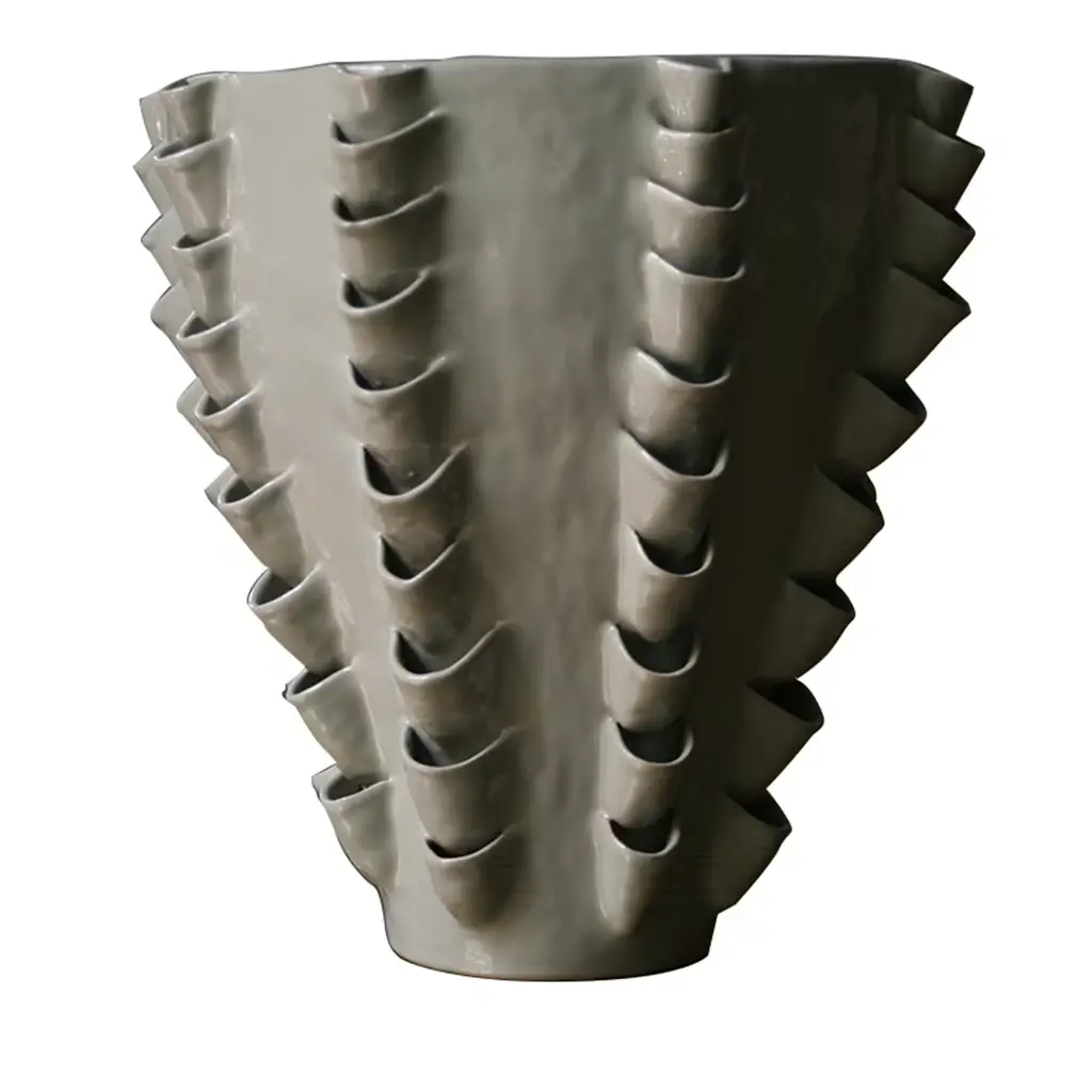 Intermingling the past and the present, the Fluted Small Vase is made of 3D-printed ceramic to place it at the crossroads of the ancient and futuristic worlds. The fact that a machine fashioned it looks forward; while the kiln in which it was fired just as it would have been centuries ago, looks back. The result is a contemporary white vase that reads like a masterpiece made by hand.