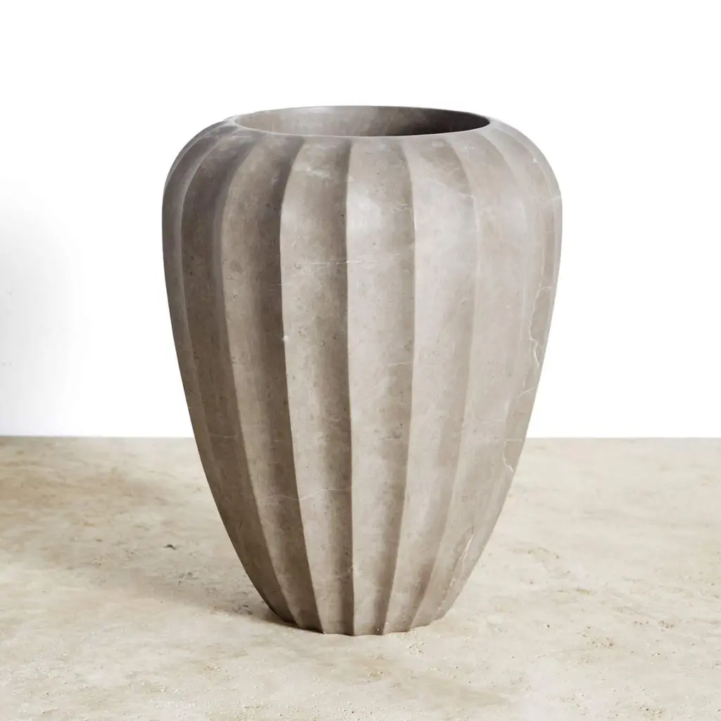 The classic hand-sculpted fluted marble vase is an elegant and dramatic piece to hold fresh flowers or stand alone piece. This solid marble vase is available in two sizes.