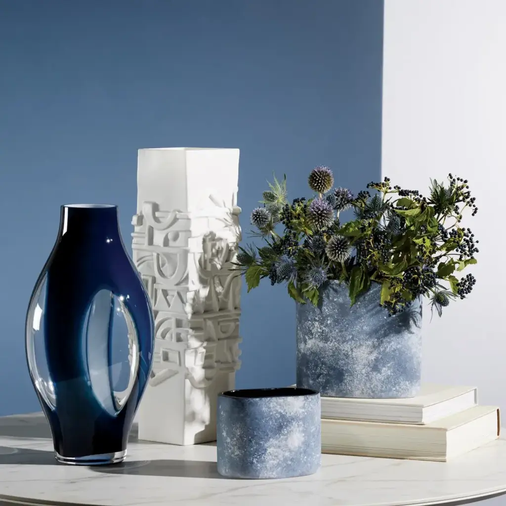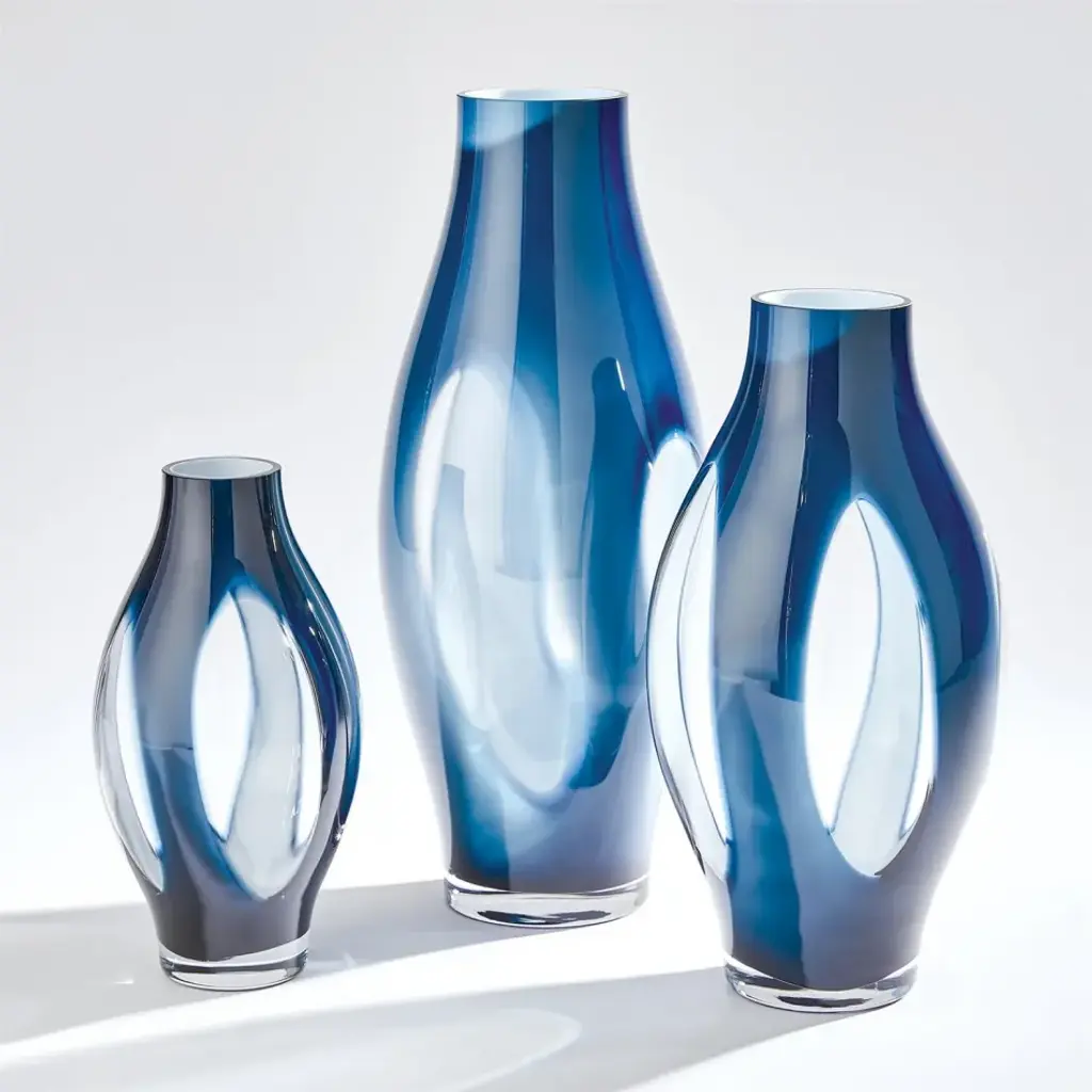 Handcrafted by Polish artisans, the Fly Through Vases are mouthblown clear & blue Polish art glass. Display as an object or with a beautiful floral arrangement. From a fashion forward perspective, Global Views offers accessories, furniture, statement lighting, and an assortment of rugs and mirrors to add beauty and joy to your home.