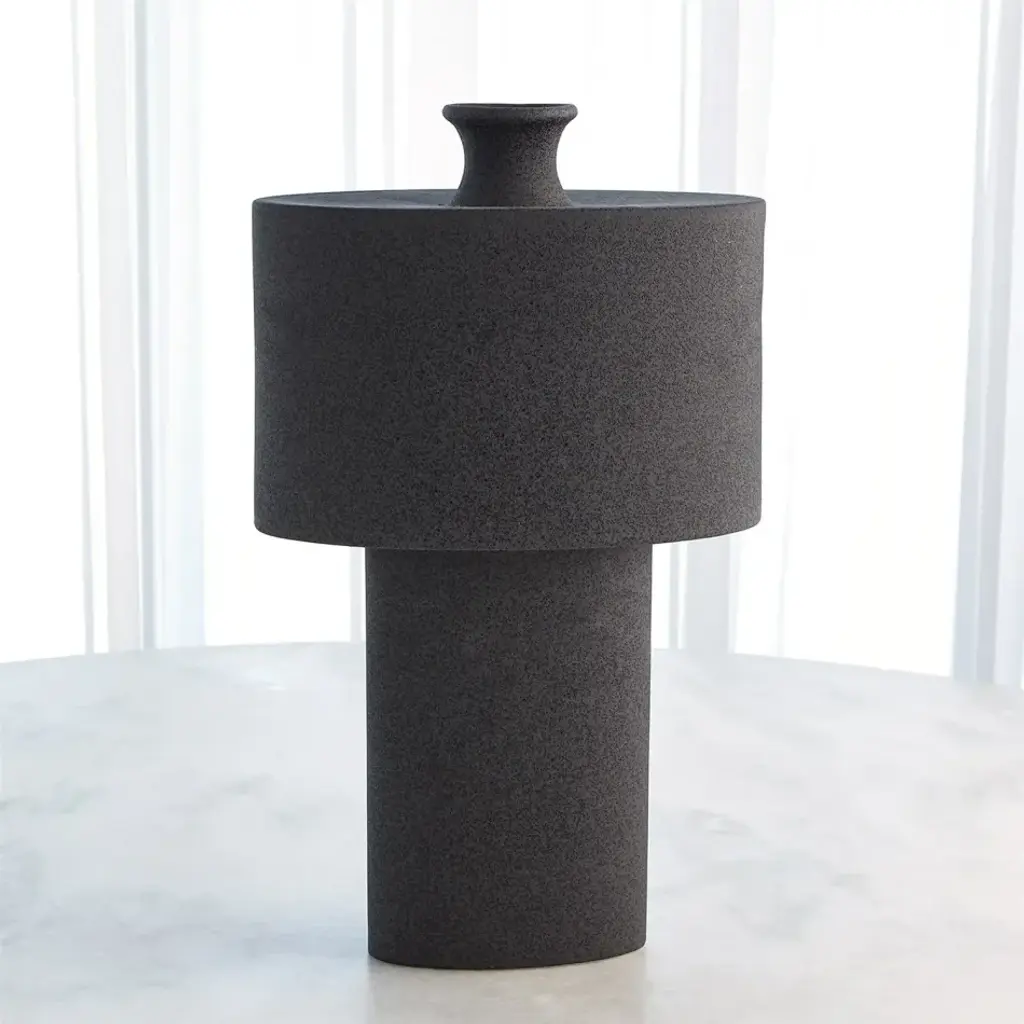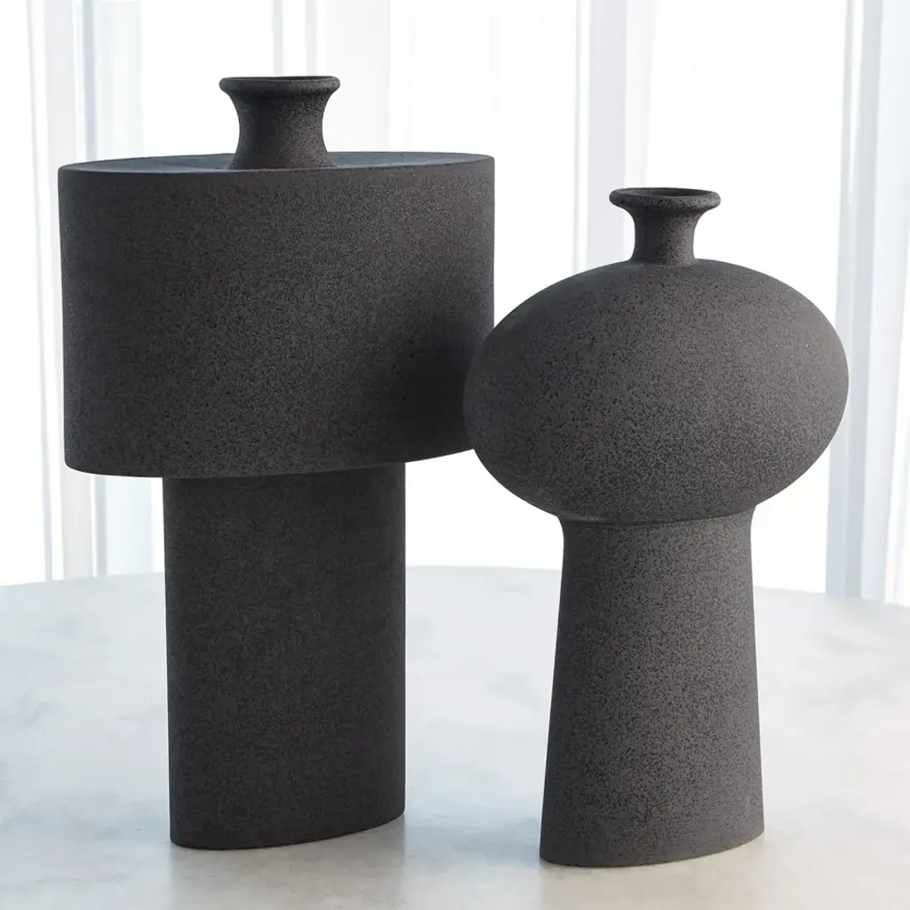 Inspired by the human form, The Folk Vase is slip cast Portuguese ceramic with a black stone finish. From a fashion forward perspective, Global Views offers accessories, furniture, statement lighting, and an assortment of rugs and mirrors to add beauty and joy to your home.