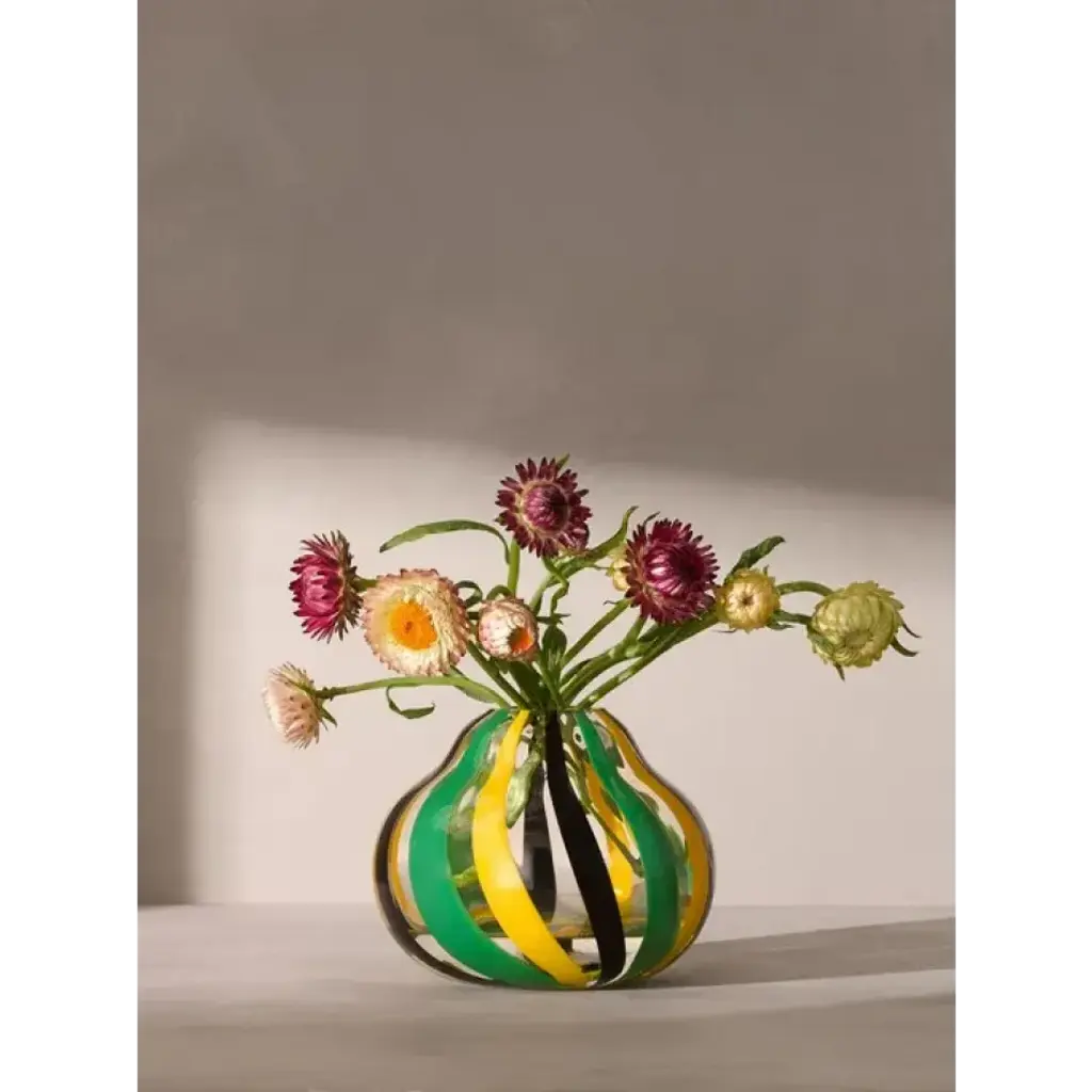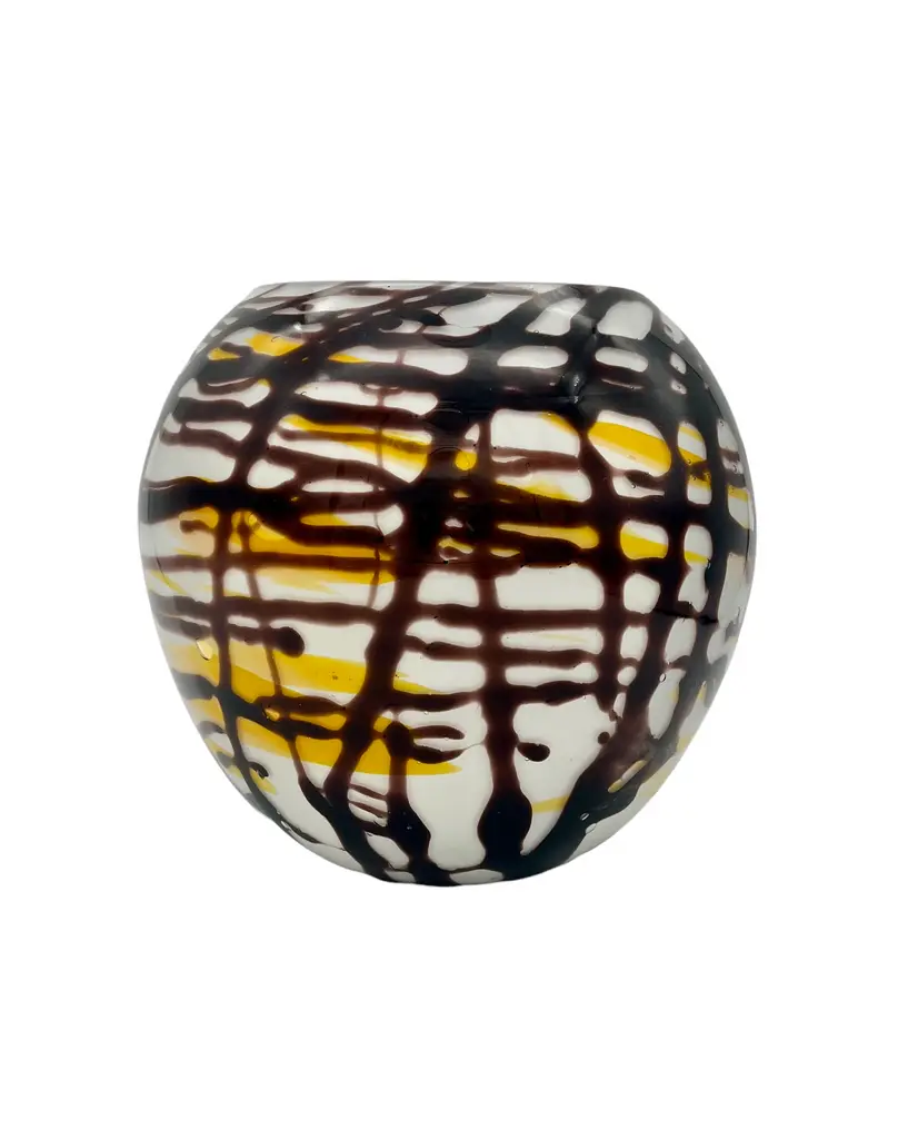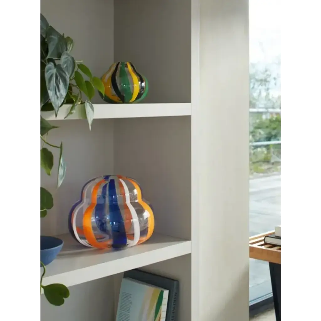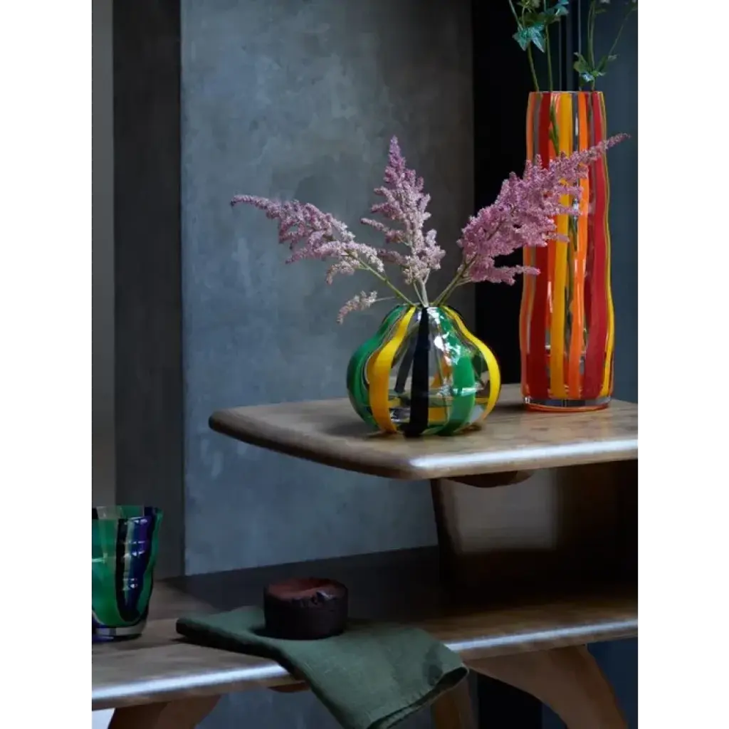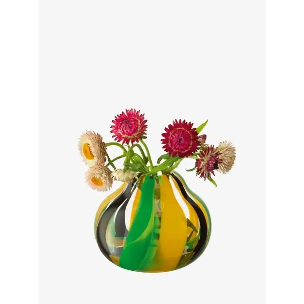A mouth-blown vase with a distinctive folk-inspired pattern and rounded form. Ideal for single stems, small displays and table centrepieces.