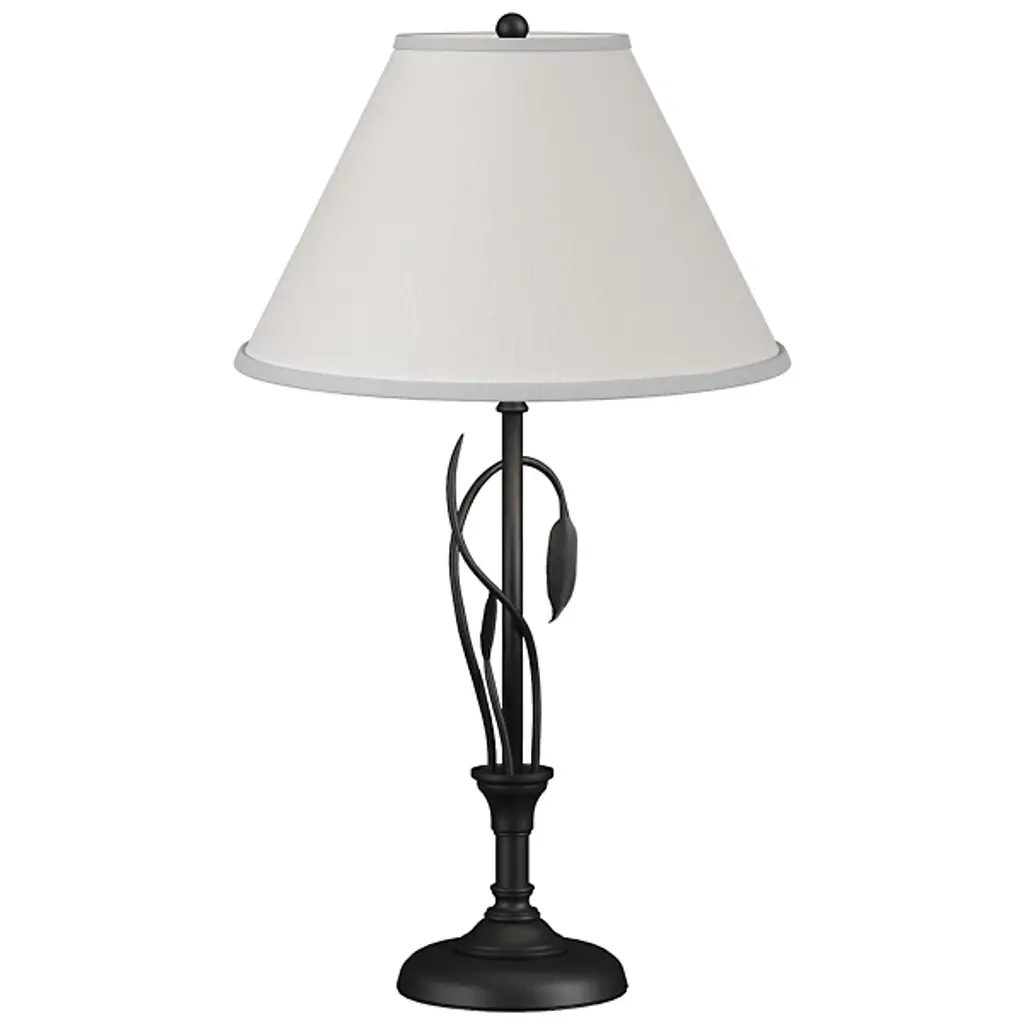 Our table lamp is an example of "sylvan steel." Stems of hand-forged iron sprout from the lamp post, with one gently curved stem culminating in a finely-crafted leaf. Shaped by artisans at our forge here in Vermont, each piece is unique.