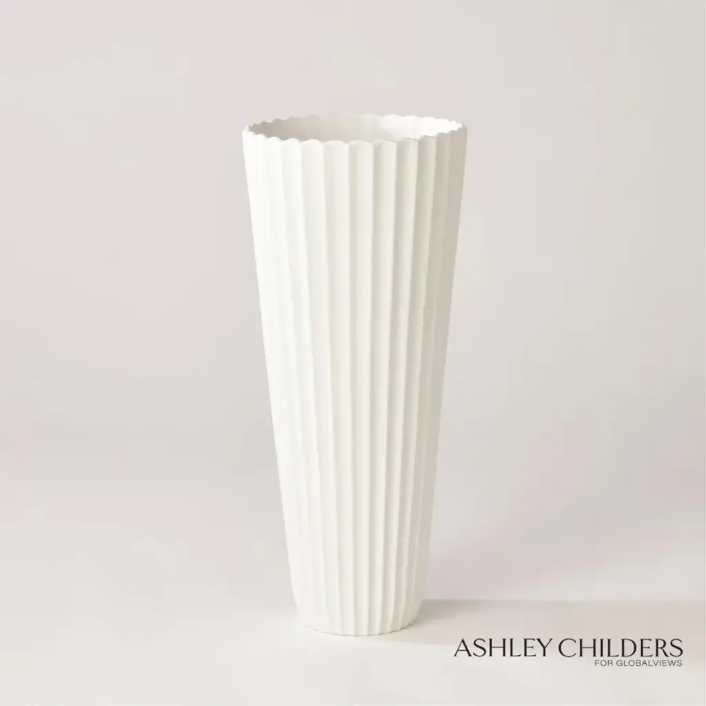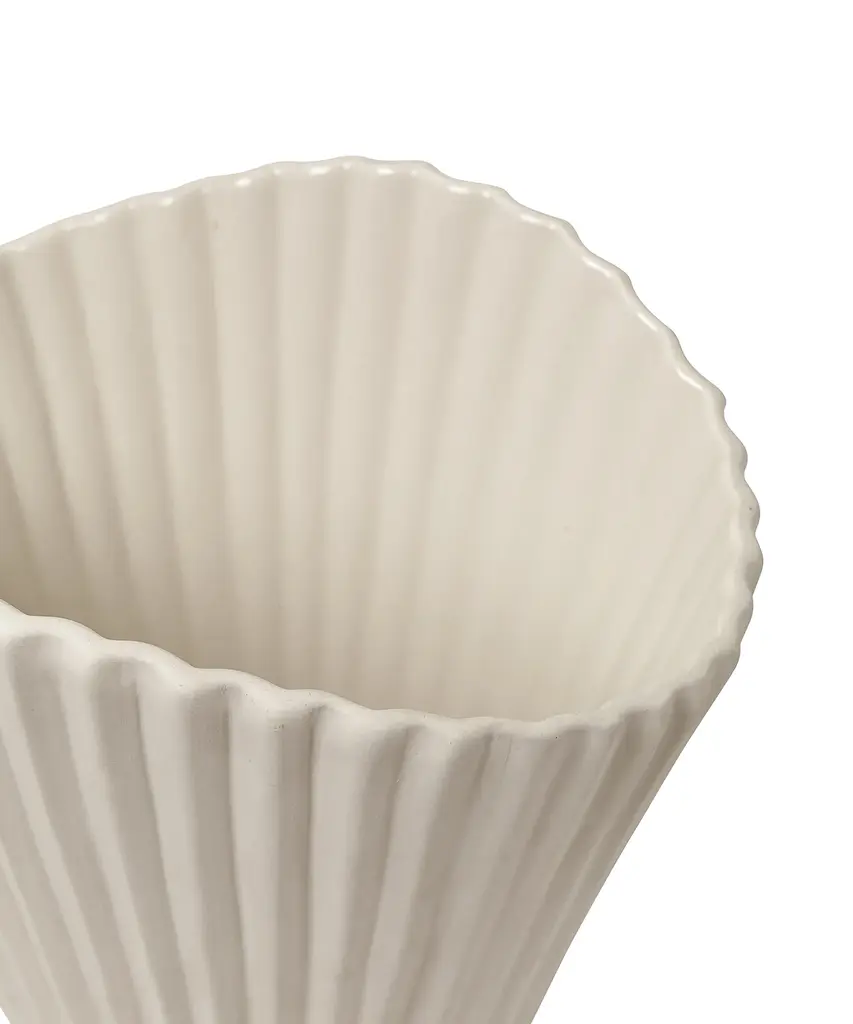 A more compact extension of our cherished Fountain Series, this vase immediately captivates attention with its elegant, sculptural shape and softly pleated design. Inspired by the form of a classic fountain, it can be filled with flowers and branches or stand alone as a stunning decorative piece. The Fountain Vase features a matte exterior and glazed interior, enhancing its sophisticated appeal and adding a touch of delicacy to your table setting. Designed and produced by the Copenhagen-based studio Ferm Living.