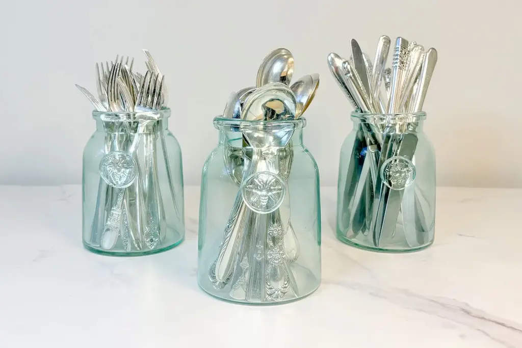 Inspired by European wide-mouth jars once used for the summer harvest, these elegant vessels make a statement. The beauty of the French Bee Mason Jars is their organic and imperfect shape - the graceful sloping sides of the glass with the addition of a vintage-inspired French bee seal make for a timeless accent piece. The mason jar's true beauty shines when embraced as a clear glass vase with a bouquet of fresh flowers.