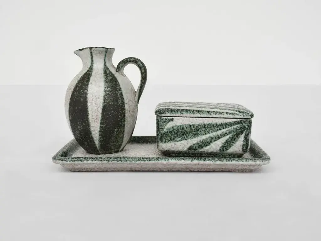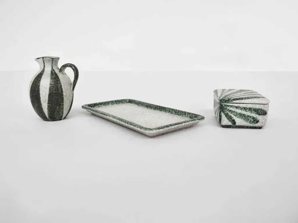 French Rusha Ceramic Jewellery Boxes And Vase, 1950s, Set Of 3