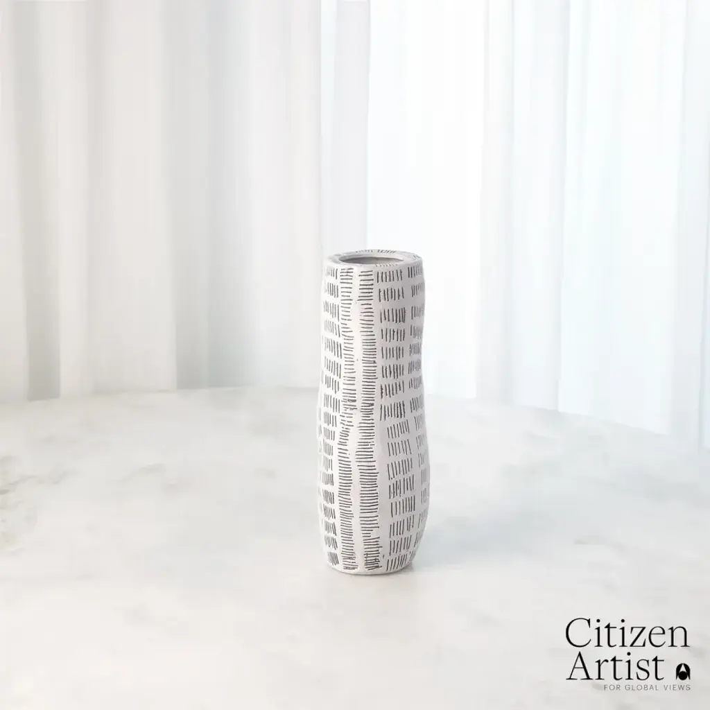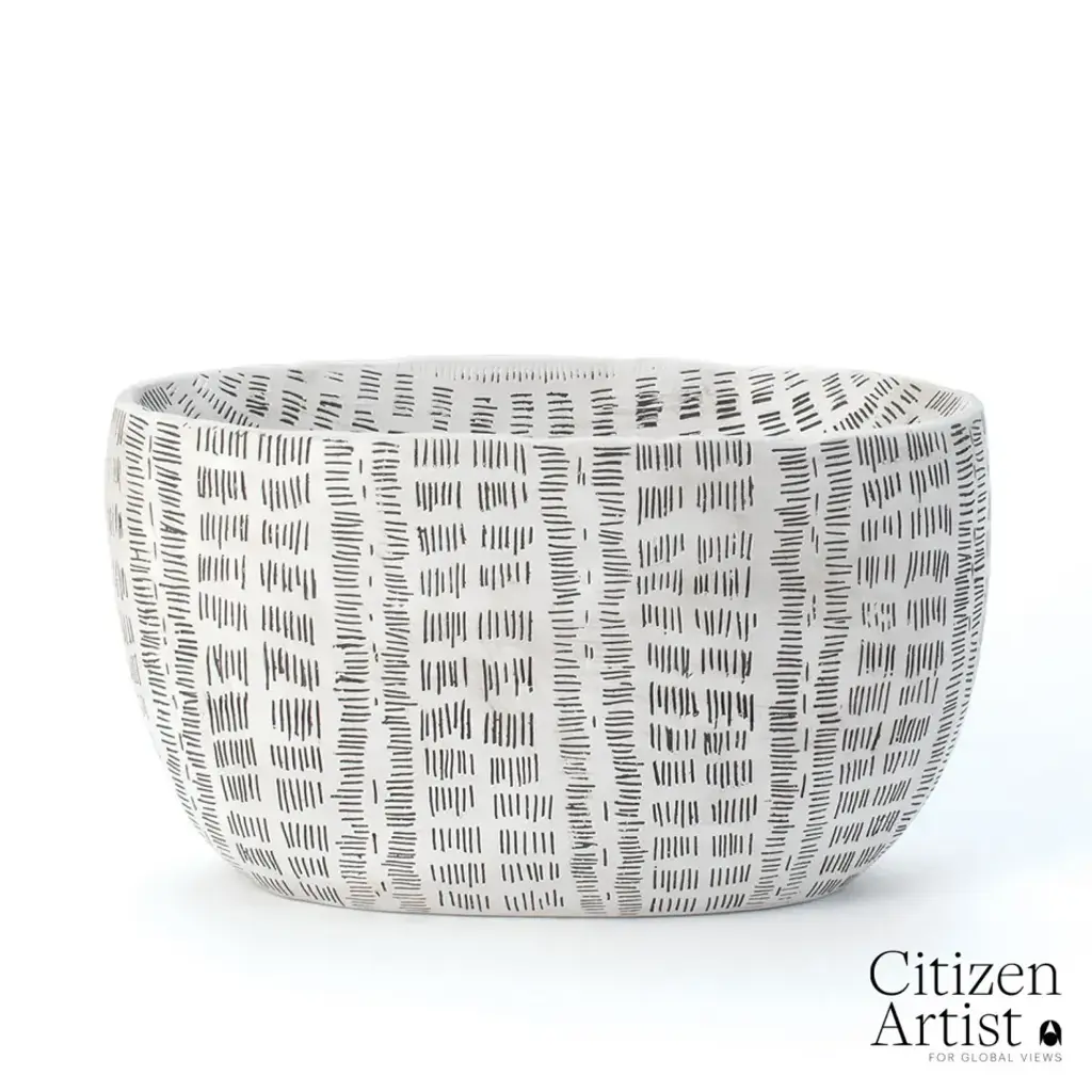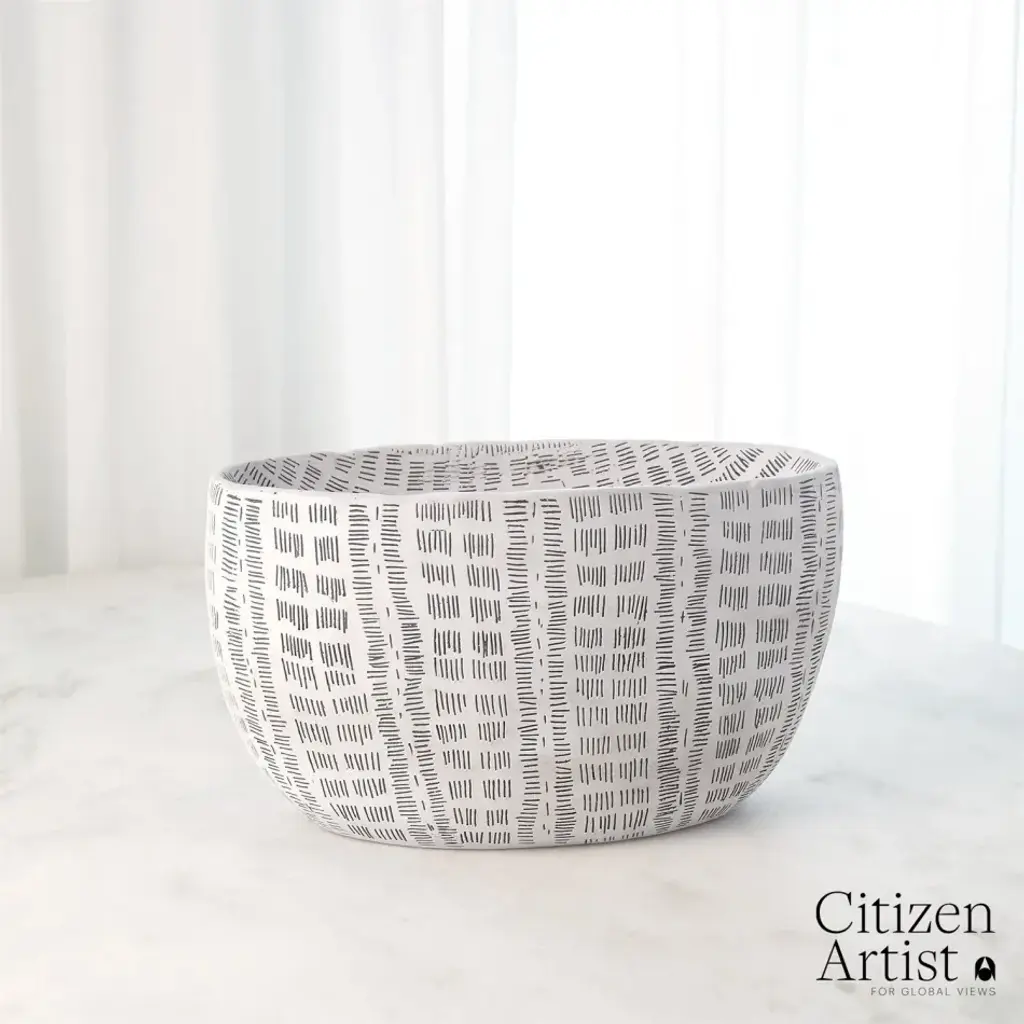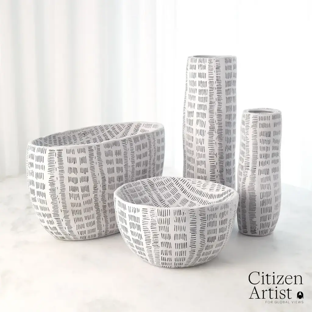 The Frequency Vases and Bowls feature an African mud-cloth-inspired original painting by the designers that is carved into the ceramic forms, then glazed and washed to create the contrast between the pattern and the body. Handmade in Italy. Also available in black. From a fashion forward perspective, Global Views offers accessories, furniture, statement lighting, and an assortment of rugs and mirrors to add beauty and joy to your home.
