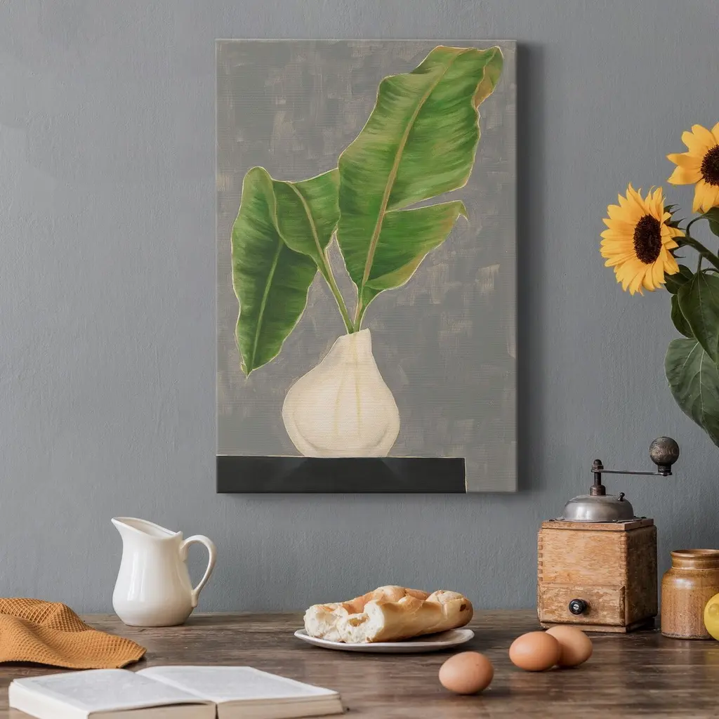 Frond in Vase III Premium Gallery Wrapped Canvas - Ready to Hang A premium hand stretched gallery wrapped canvas print created to last. Featuring a beveled a solid wood stretcher bar, each piece comes ready to hand 5 SIZES AVAILABLE 8''X12'' - Overall Size 16'X20'' - Overall Size 24''x32'' - Overall Size 30''x40'' - Overall Size 36''x48'' - Overall Size Each piece is made to order. Built to Last Each piece comes ready to hang Solid wood stretcher Fade and Water resistant Made domestically