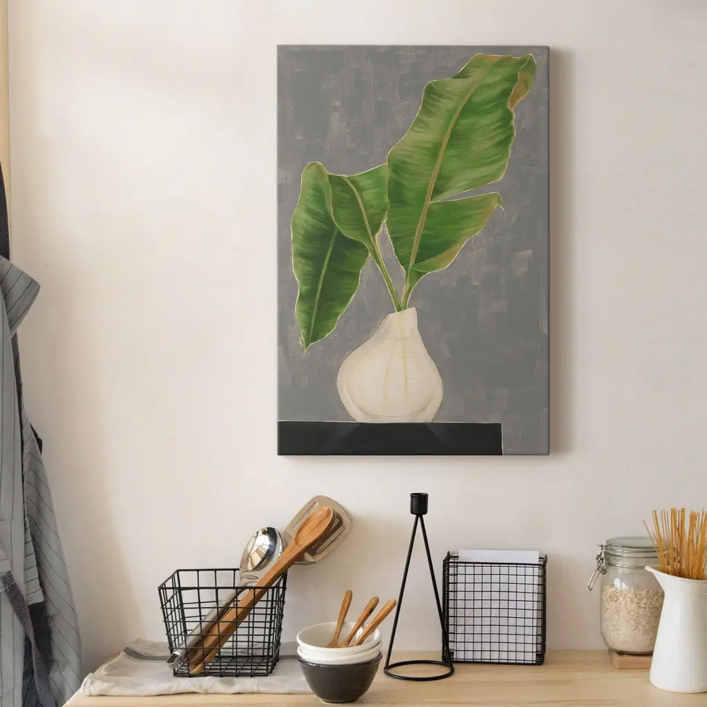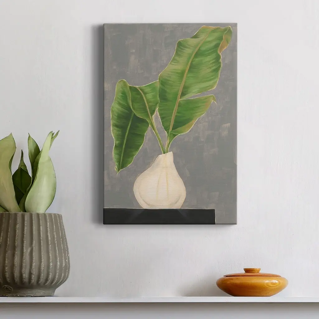 Frond in Vase III Premium Gallery Wrapped Canvas - Ready to Hang A premium hand stretched gallery wrapped canvas print created to last. Featuring a beveled a solid wood stretcher bar, each piece comes ready to hand 5 SIZES AVAILABLE 8''X12'' - Overall Size 16'X20'' - Overall Size 24''x32'' - Overall Size 30''x40'' - Overall Size 36''x48'' - Overall Size Each piece is made to order. Built to Last Each piece comes ready to hang Solid wood stretcher Fade and Water resistant Made domestically
