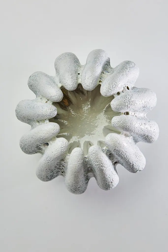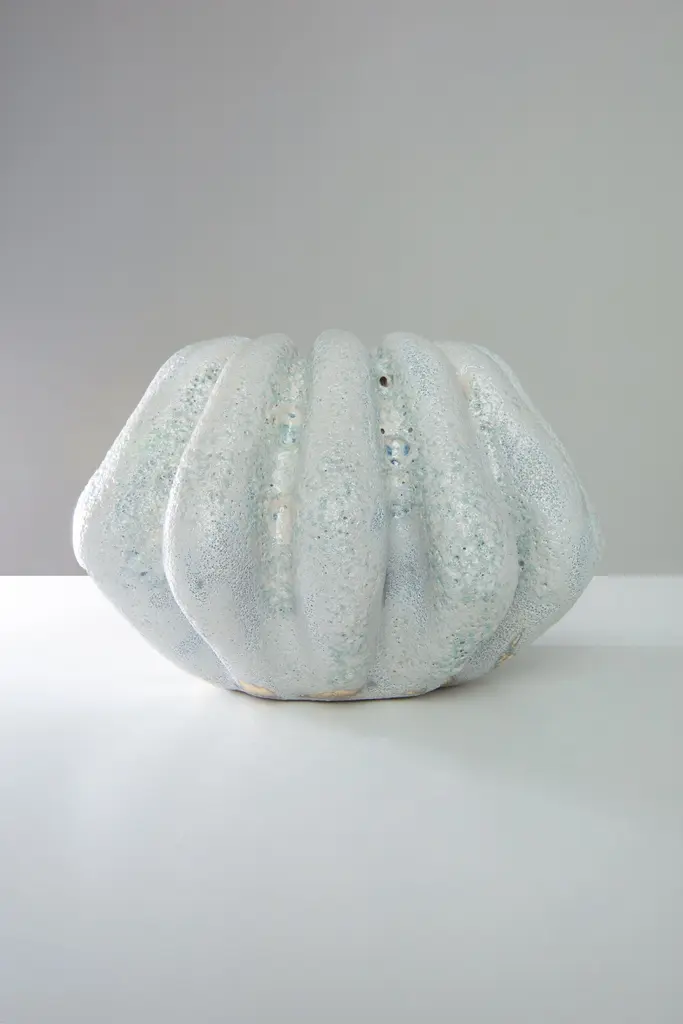 Galaxias 2 vase by Angeliki StamatakouOne of a kind, 2022Dimensions: H13.5 x W18 cm.Materials: Stoneware, handmade glaze.Colors: ice, blue, forest green, teal, rust effect.Angeliki Stamatakou is a ceramics artist based in Athens, Greece. She studied Fine Arts at AKTO University in Athens. Her work includes unique sculptural decor objects, vases, and centerpieces. For her ceramics she uses stoneware clay employing coiling, wheel throwing and sculpting techniques. She owns the entirety of the creation process, from the conceptual stage and design to the pottery making, sculpting, painting, glazing, and firing. She always strives for her creations to be original, imaginative, and more importantly, to reflect her personal aesthetic angle and emotions. Her main source of inspiration is nature, which she finds is full of treasures of various patterns, textures, and shapes. She is also influenced by modern art and various areas of design, such as architecture, jewelry, and fashion.