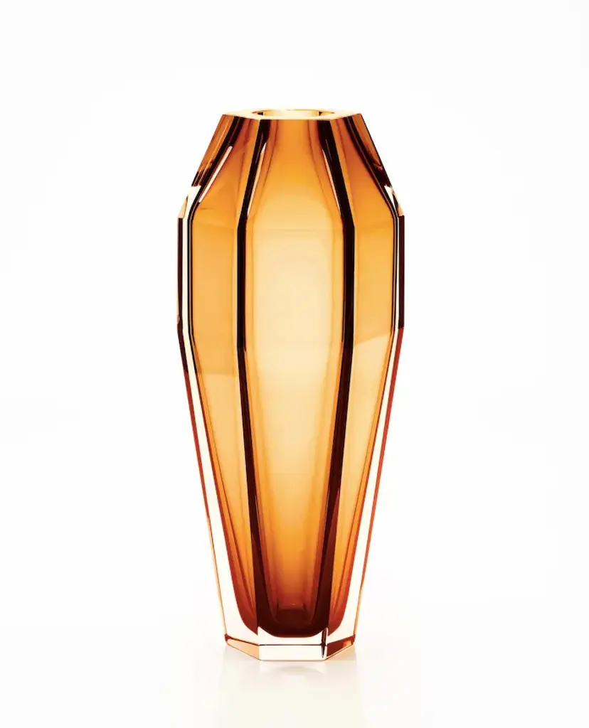 Purho continues to search for products with complementary shapes with the pair of Gemello and Gemella vases designed by Alessandro Mendini. Sharing the same design concept, the vases play on contra- sting volumes, so that the first appears more slender whilst the second has softer lines, a nod towards the male and female silhouettes. Made of Murano glass, clear or with matt finish, the vases are available for cu- stomisation thanks to the colour variations available in the colour chart.