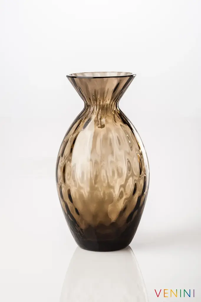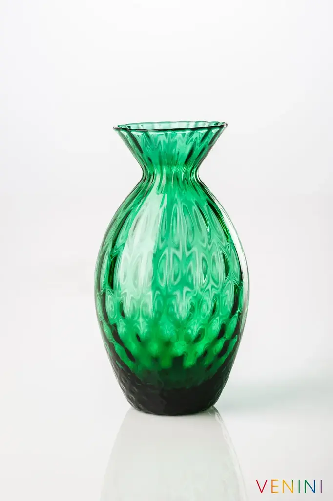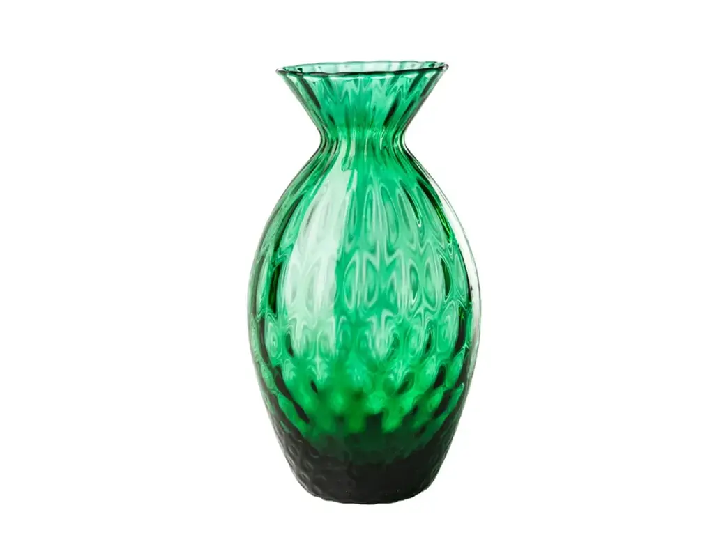Gemme is a vase made of hand-blown glass with the traditional balloton process with a metal mold, for a cross relief effect. In the expert hands of the blowers, glass turns into precious gemstones of various colours – Green, Grass Green, Purple, Red, Aquamarine, Sapphire, Tea and Grey. Unique and sparkling. Crafted and etched using different techniques, from Balloton to Rigadin.Colors:Balloton TAUPEGREEN balloton