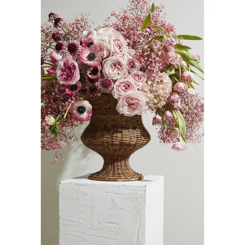 Mix trendy with traditional with the Geof Rattan Urn. Sustainably handmade in Indonesia, this modern take on classic design is lightweight, yet sturdy to accommodate florals or plants . This classically-shaped, curvy piece is easy to dress up or down for home decor.