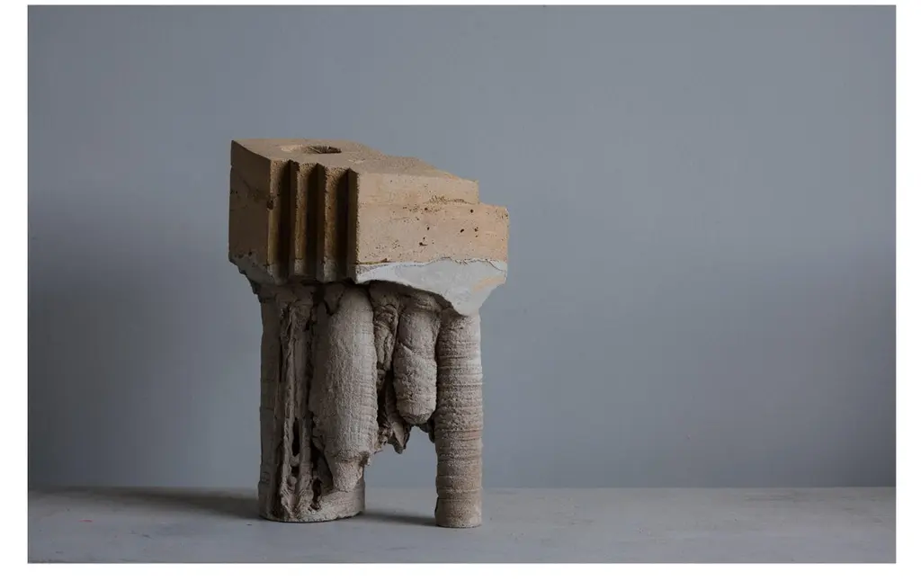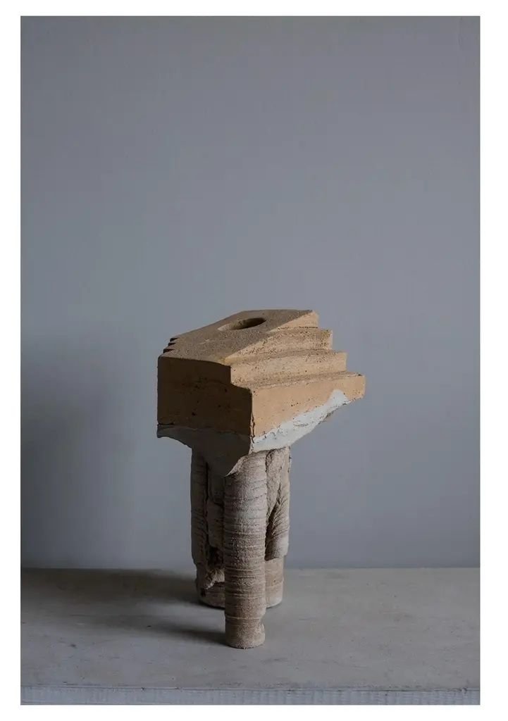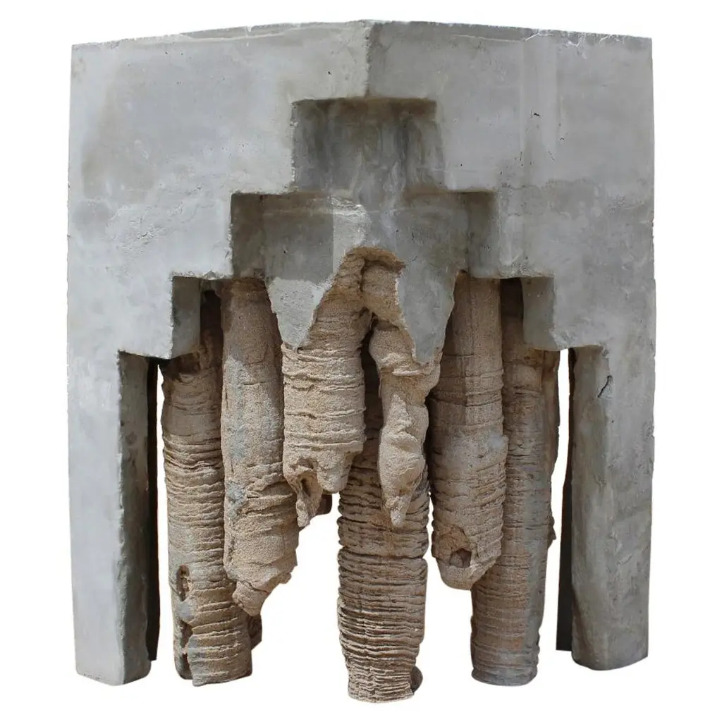 Geomorphic vase by Christian ZahrDimensions: W 20 x D 20 x H 36.5 cmMaterials: Cement- Sand- Water- Time.Each piece is handmade.Geomorphic Archeology: Unearthing the Ephemeral - Indoor primitive landscapes (furniture and objects). Sand carted. these concrete objects, an agglomeration of unpredictable and predesigned forms archetypal and fictional, archeological and geological, capture the complex and transformative times of the current turmoil. They are the outcome of an exploration of nature's microcosm and macrocosm during the Covid-19 lockdown. Taking advantage of the time slowed down handmade and made by nature (drops of water); they celebrate uniqueness in response to mass production, intimacy in our relation to our in-tenors and objects. Independence from the chain production suspended by the pandemic. Christian Zahr studied architecture at the Academie Libanaise des Beaux Arts, Beirut, Lebanon. After graduating in 2003, he interned at Ateliers Jean Nouvel Paris (2004) before going back to Beirut and working for renowned Lebanese architectural firms. In 2012 he founded Studio Christian Zahr, where he develops his practice as an independent architect, landscape designer, object designer and artist. Moving between these scales allows him to blur the boundaries between these different realms with the obsession to create a new language. Zahr’s work as a designer was showcased in several exhibitions such as Post-it in La Galerie de L’Architecture - Paris (2004), Beirut Design Week in Beyt Beirut Museum (2018), 1000 Vases in Dubai Design District (2019).
