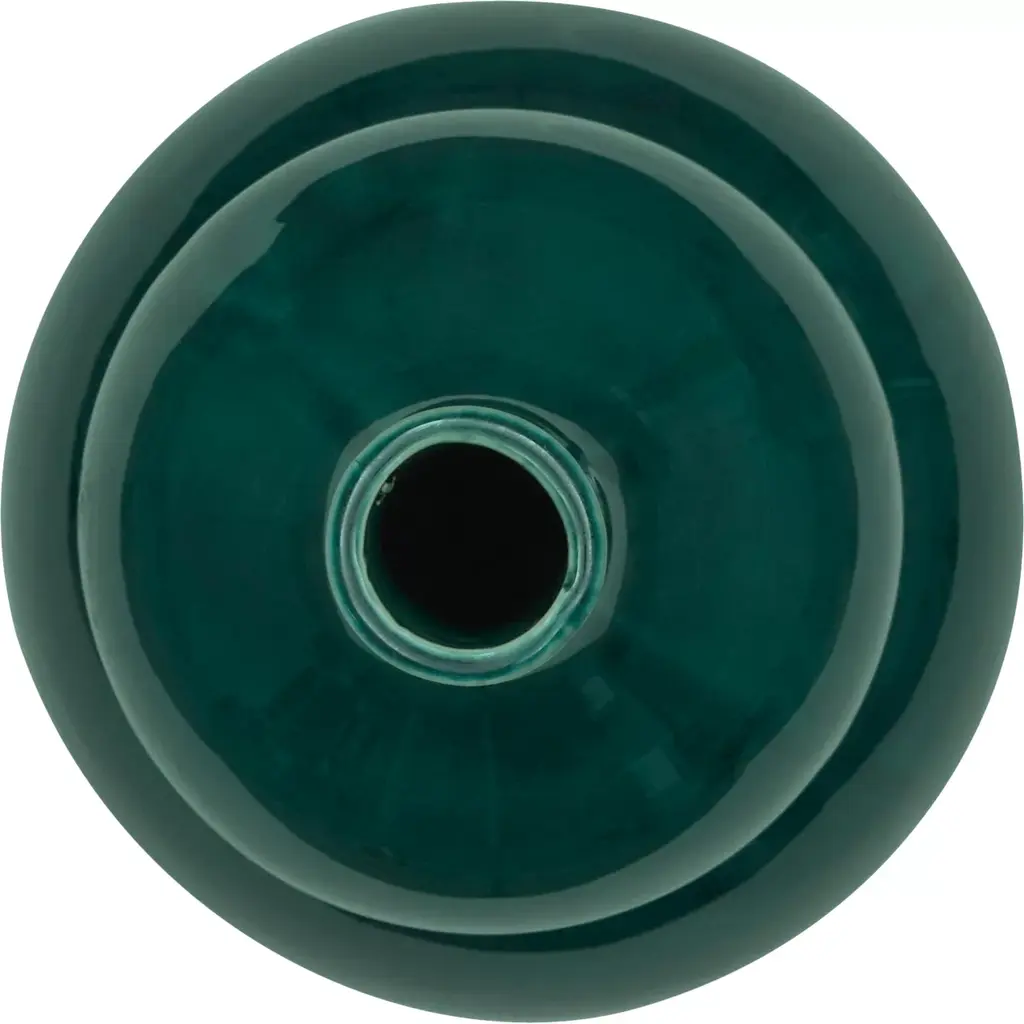 Our Geraldine ceramic gourd vase features graceful, sculptural curves that make it a standout piece in any room. Available in two sizes—17.9 inches tall and 12.2 inches tall—and in rich burgundy or emerald green, it offers a bold pop of color to complement your décor. Display one vase on its own as a focal point or group together for a cohesive look. Please select your size and color before adding to cart.