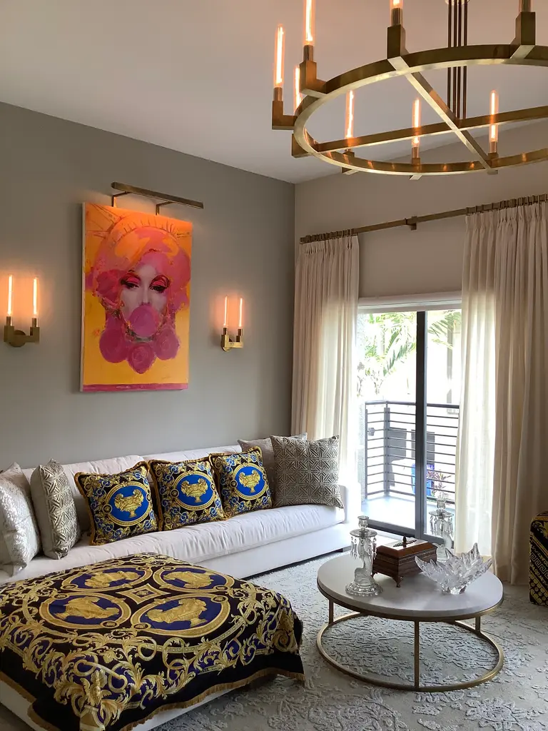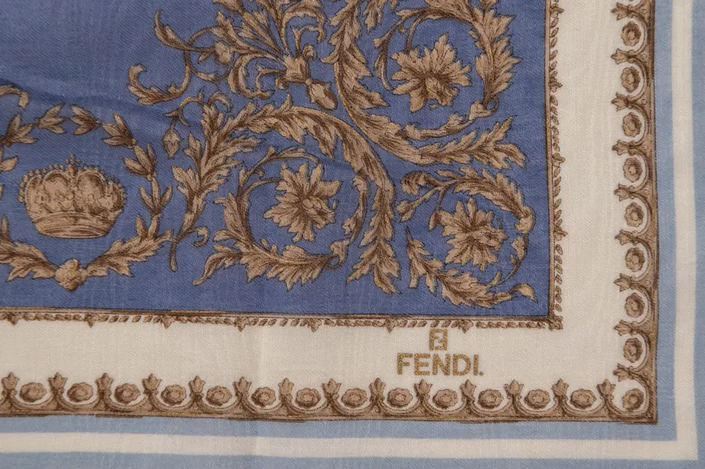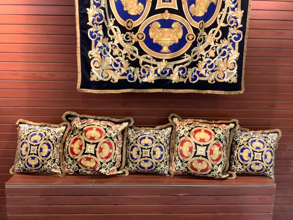 Gianni Versace Custom Blue & Gold Urn Design Velvet Throw