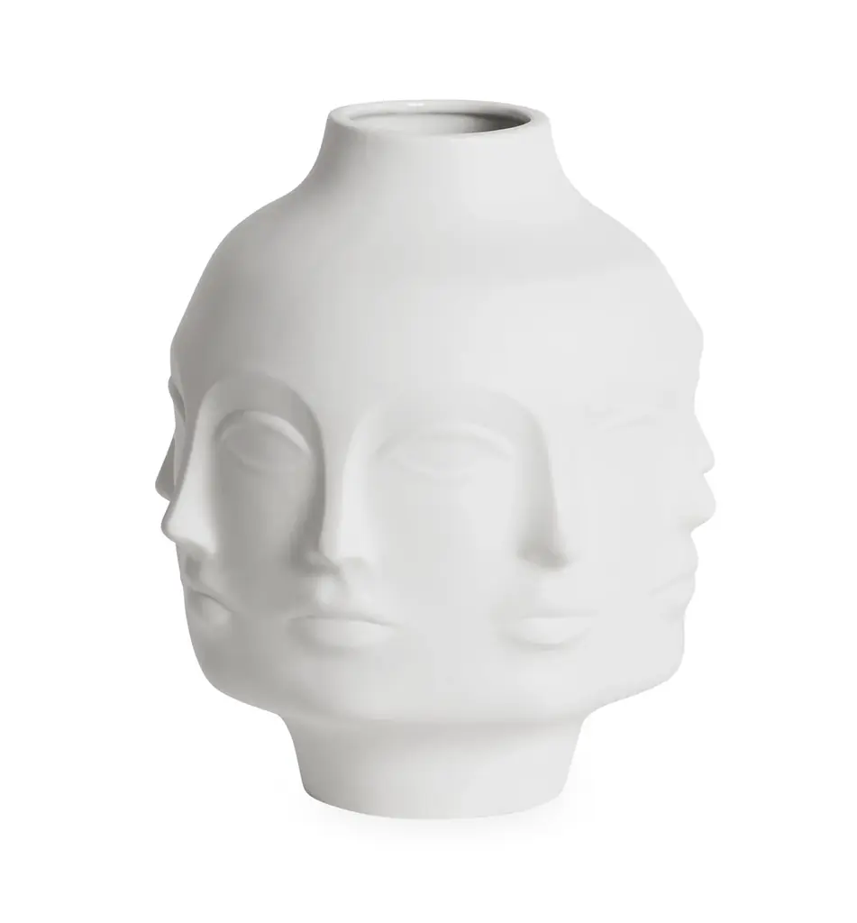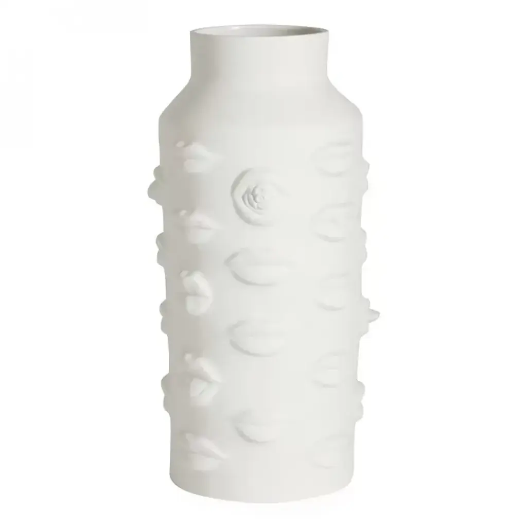 An expressive collection of moody mouths wrap an oversized vessel crafted from high-fired unglazed porcelain. Beguiling in rest or playfully puckered, our lips—framing tongues, holding pills, highlighting hardware, flaunting flowers—add a kiss of cool to your table, mantel, or shelf. Inspired by Gala, wife and muse of Salvador Dali. Jonathan throws the models for the Muse vessels and then substitutes our signature geometric relief patterns with body parts—faces, breasts, lips—to create a surreal style. Each piece is made from unglazed matte porcelain to accentuate the forms and is inspired by our favorite artists' muses.