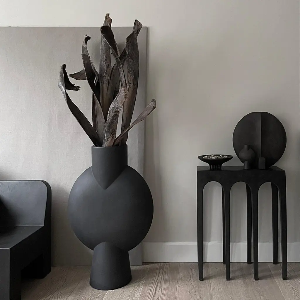 Giant sphere vase bubl by 101 CopenhagenDesigned by Kristian Sofus Hansen & Tommy HyldahlDimensions: L75 / W33 / H100 cmMaterials: CeramicThe Sphere collection celebrates unique silhouettes and textures that makes an impact with the decorative charm of sculptural art. Elegantly sculpted, each vase is finished in intricate ornate detailing. Inspired by ancient Chinese vases, a palette of faded earth tones became the series characteristic appearance. Sphere is also the first ceramic design we developed and quickly it became our signature. The vases are developed in close collaboration with highly skilled ceramist, ensuring the precise contrast between the smooth shapes and sharp edges. Hand glazed natural product therefore the colors may variate.Not waterproof safe.101 Copenhagen is a Danish design brand founded in 2017. With a vision to honor exquisite quality and craftsmanship, the collection encompasses furniture, lighting and accessories in a timeless, yet modern design. With a true passion for materials and refined textures, organic shapes and colours, 101 Copenhagen presents the epitome of classics and must-have novelties for Scandinavian and international interior connoisseurs alike.