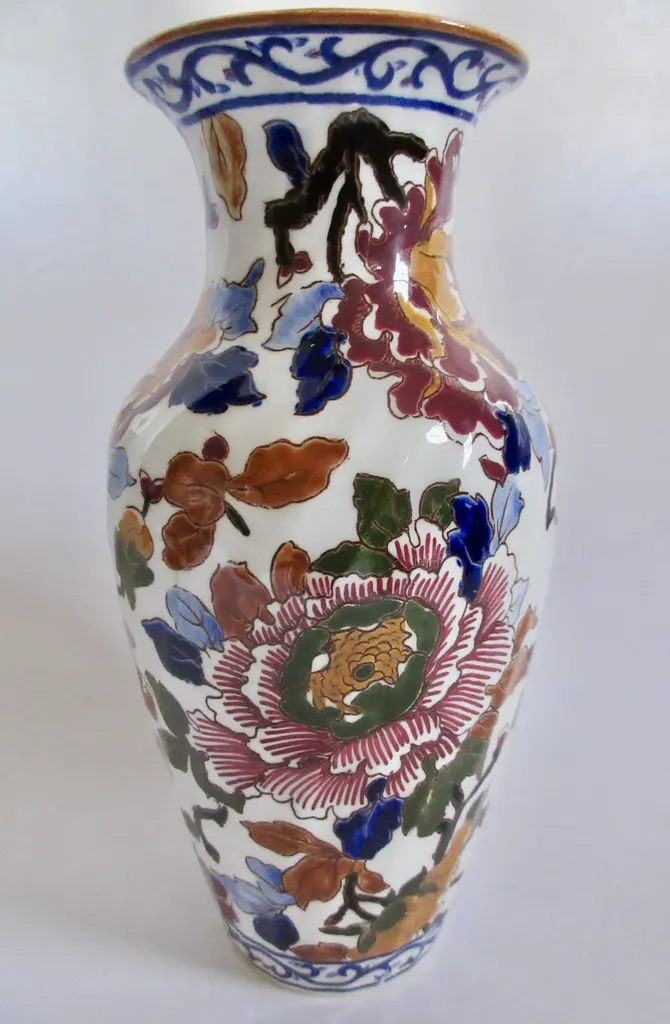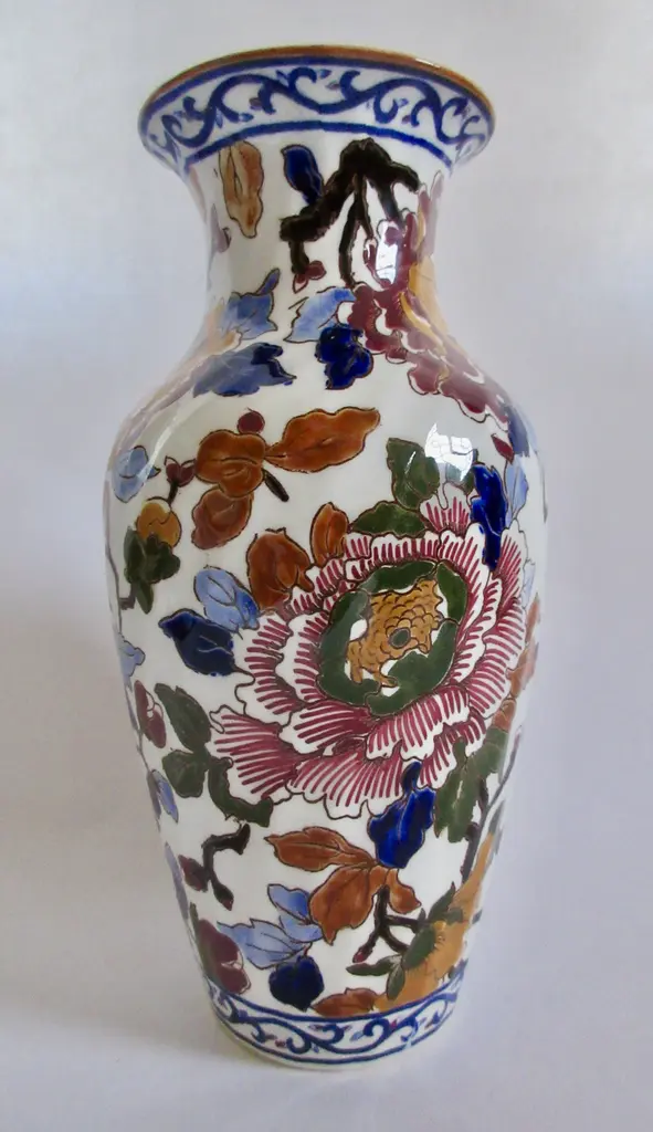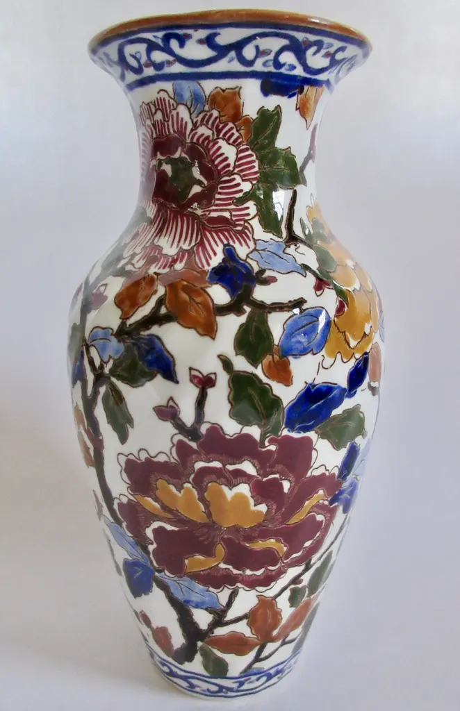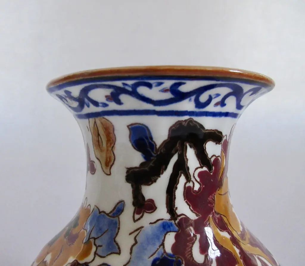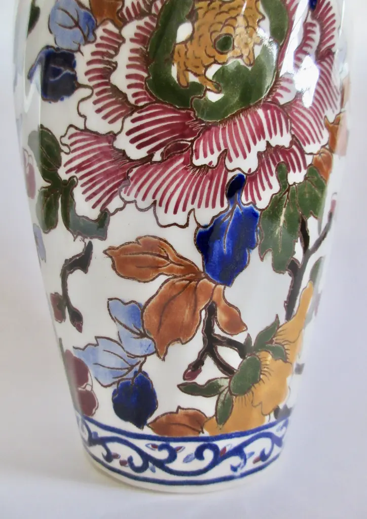 Gien French Faience Peonies Vase - 10.5"~P77668047