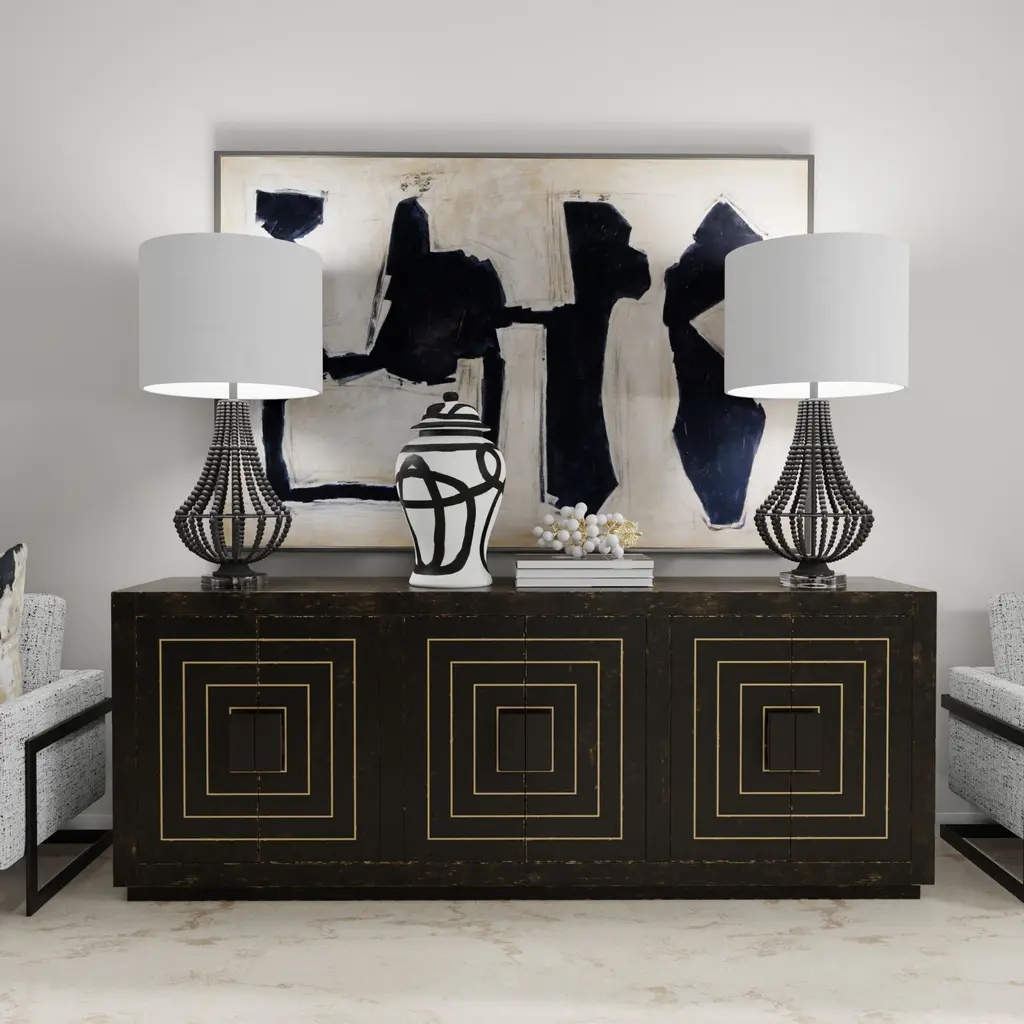 Ginger Jar- Medium - Black And White Finish On Ceramic