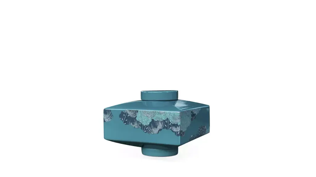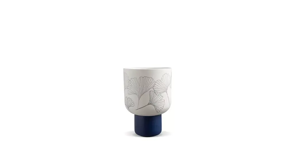 Vase in white clay earthenware, turned, enameled then painted by hand.