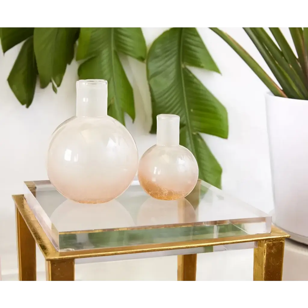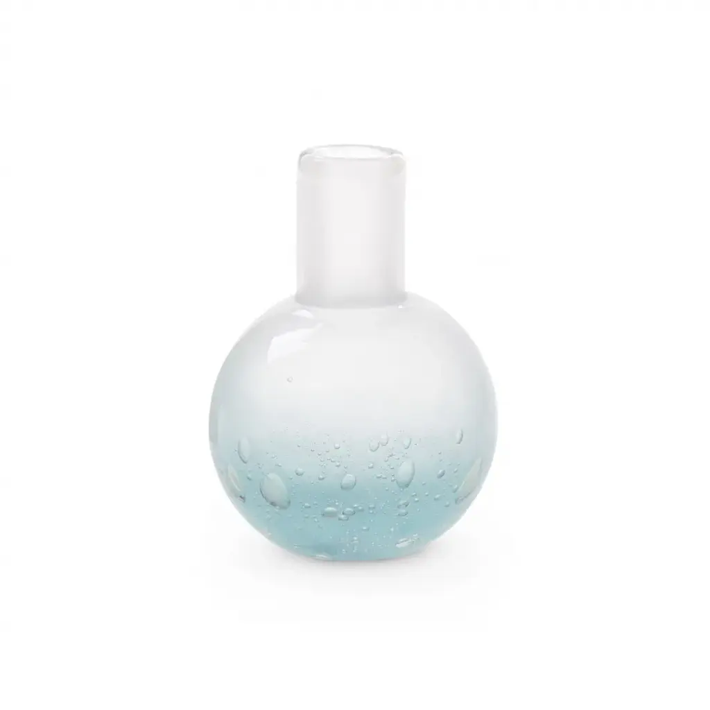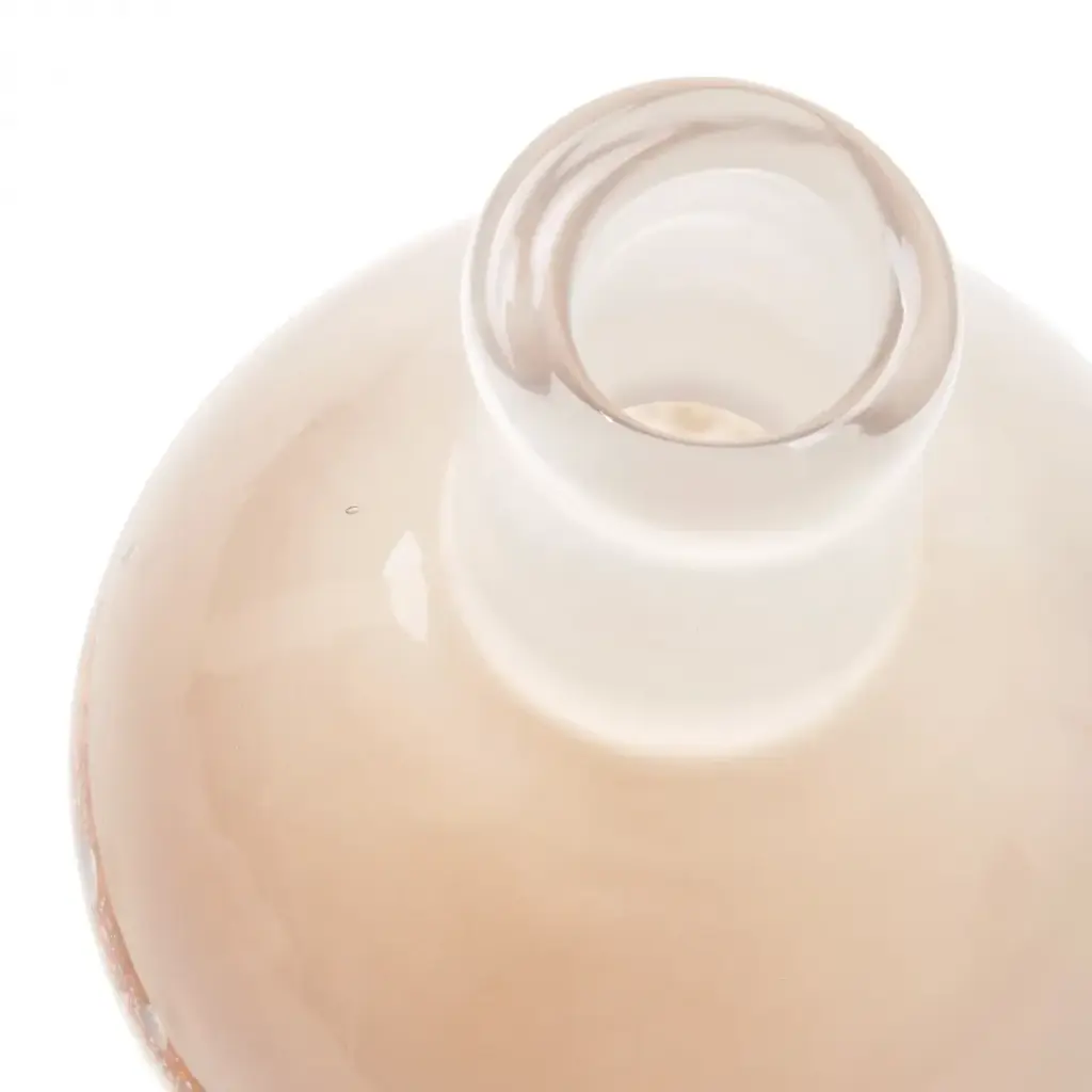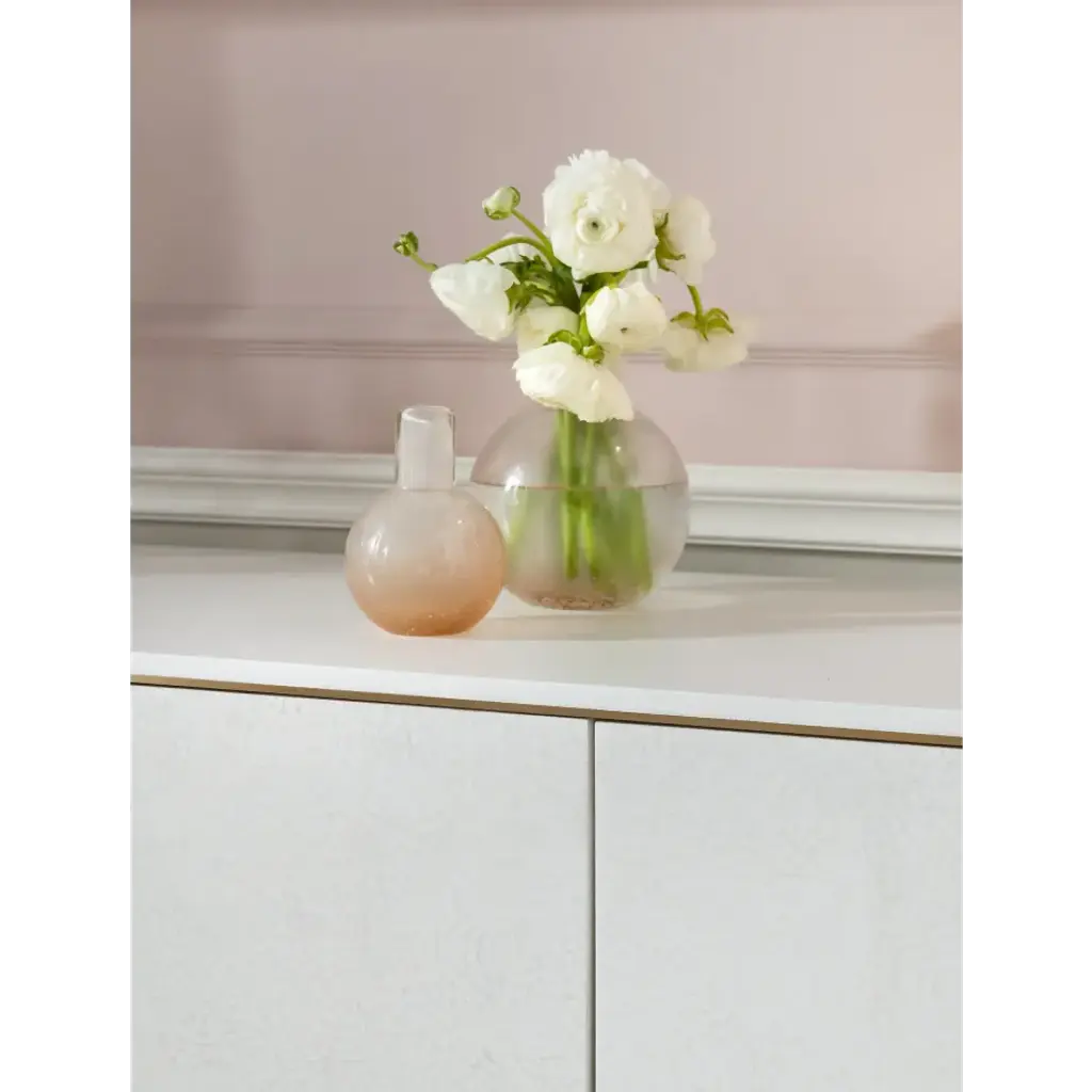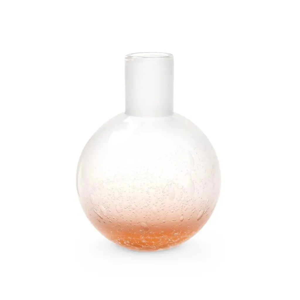 Villa & House’s masterful artisans are known for their innovative techniques and imaginative style, culminated here in the Giorgio Small Vase. Handmade glass has been mouth-blown to form the rounded shape and elongated neck. The show-stopping magic is in the details. A peach wash of color rising from its base reveals an effervescent constellation of bubbles in the glass, as if the essence of spring rain has been captured in a bottle. A gorgeous and multifaceted fixture for a fresh stem. Stage it solo or pair with its larger counterpart.