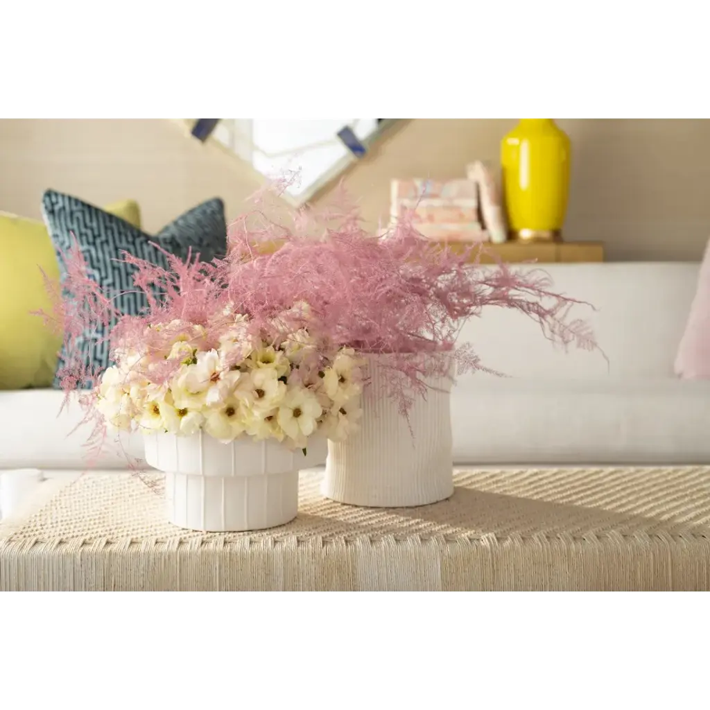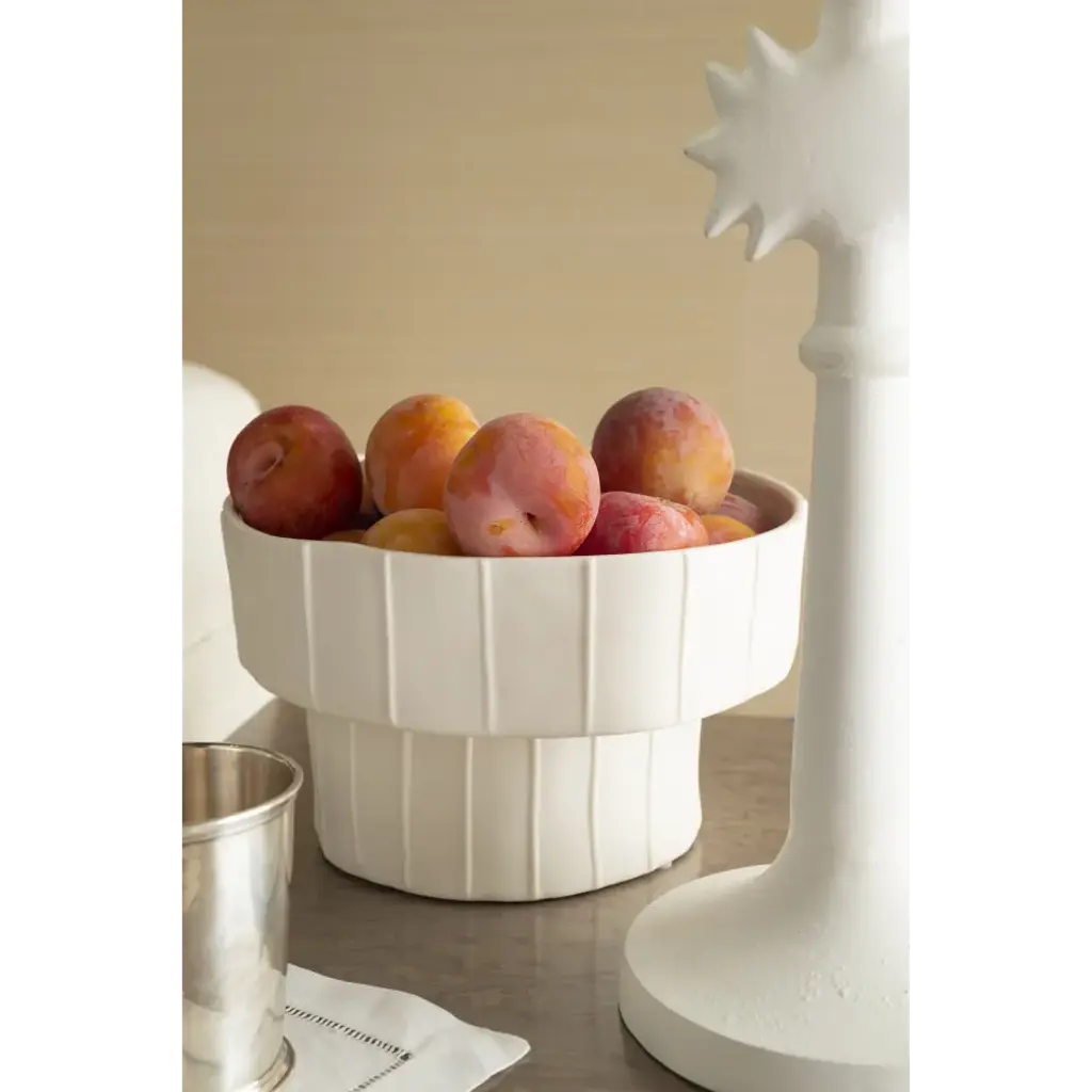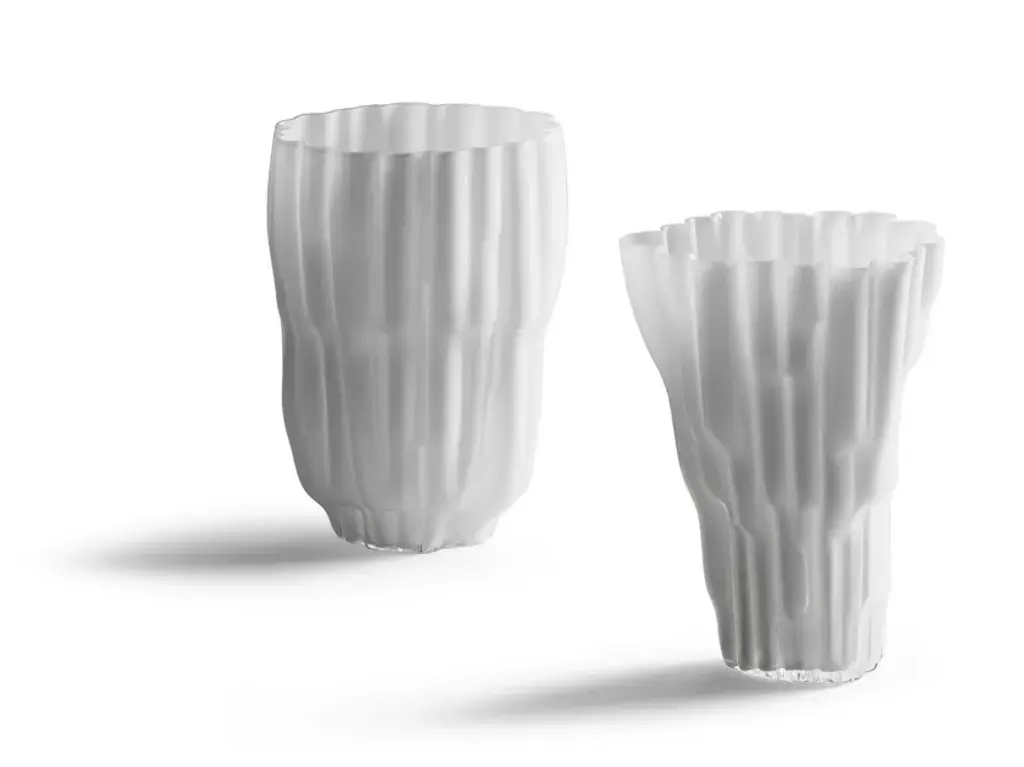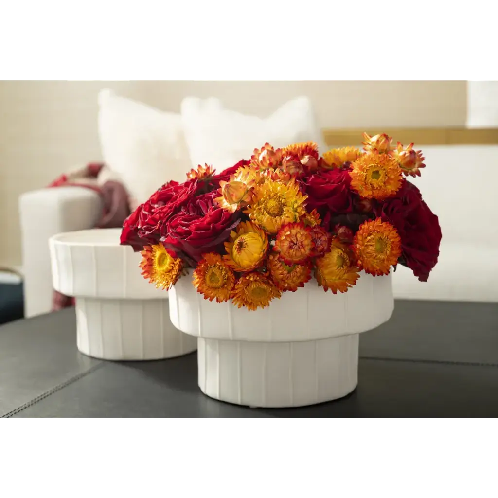 Based on a traditional shape—a smaller base with a wider top—the Girasol Vase is inspired by architectural constructivism which highlights materials and construction. In this vase, delicate strips of Blanc de Chine porcelain have been seamed together in a way which emphasizes its hand-made qualities. Produced by craftsmen descended from the same ones which created masterpieces for the imperial court, the Girasol combines very old traditions with contemporary aesthetics. It has a glossy interior finish and a matte exterior. The Girasol makes the perfect catchall in your entryway, a lovely fruit bowl in the dining room, or a stunning sculptural piece on a sideboard or etagere.
