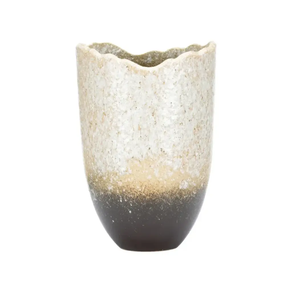 The Gizagiza Vase, named for the jagged edge and part of the Shiga collection, is hand turned and uniquely finished in one of six ancient kilns in Japan. Made in Japan.