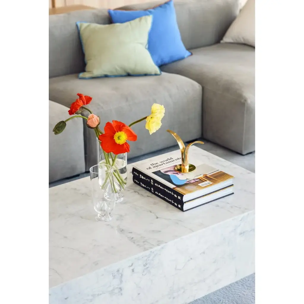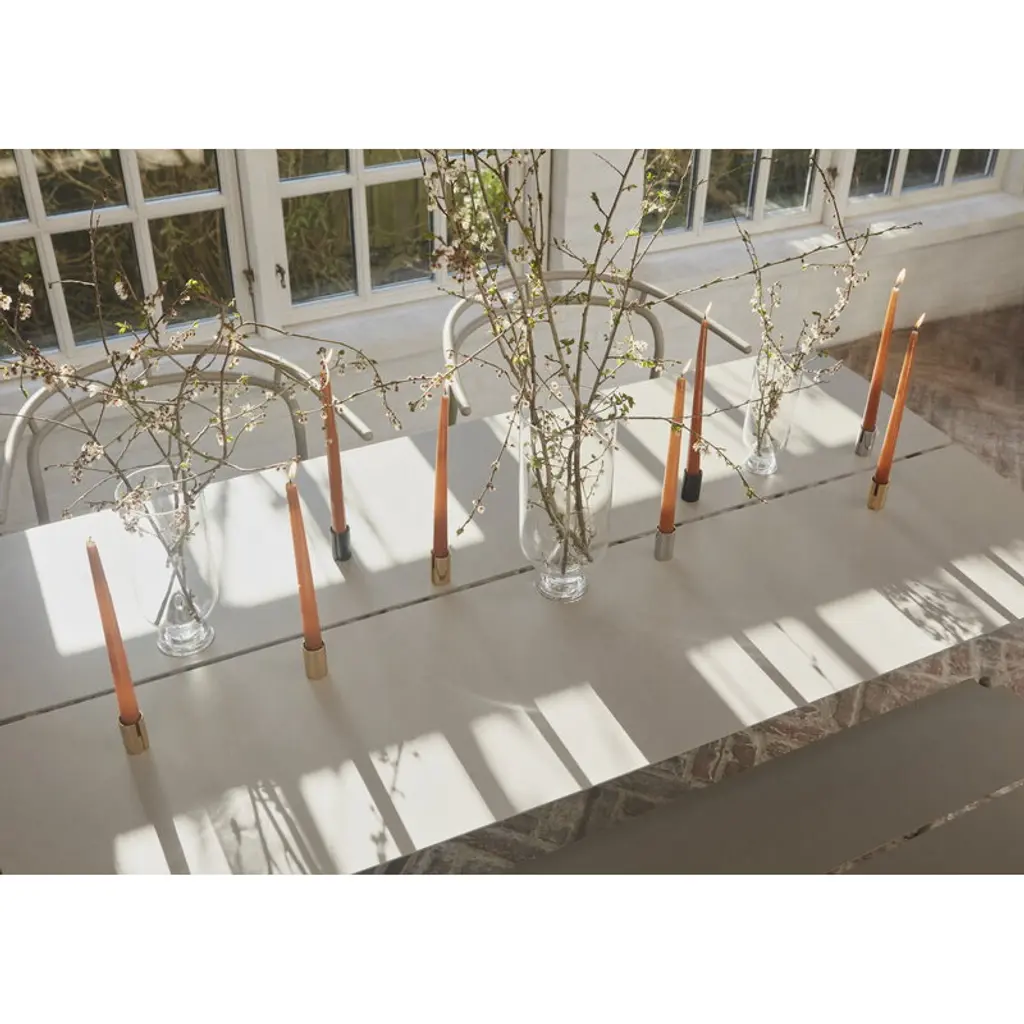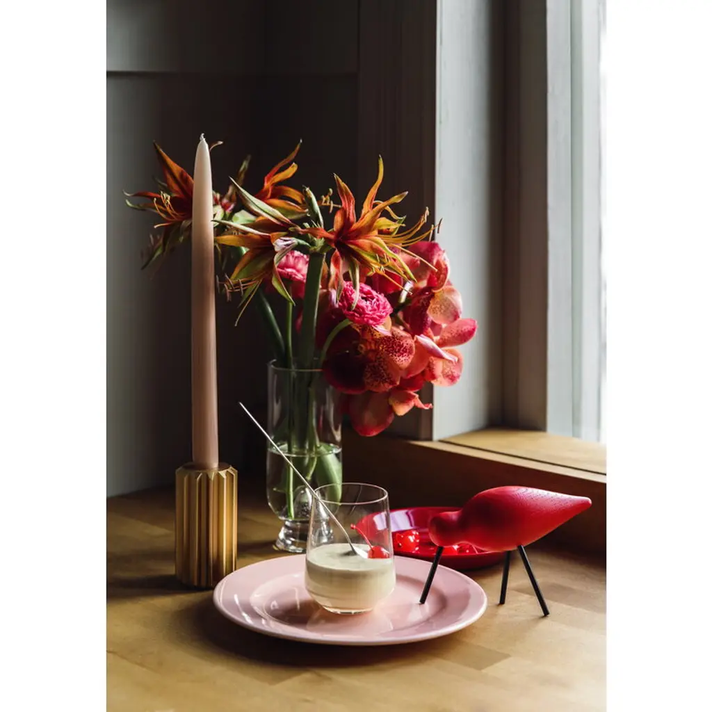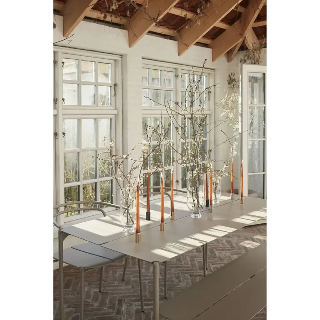 The Glacies vase by AYTM got its name from icebergs: the vase’s cone-shaped base does indeed resemble a piece of ice, the peak of which beautifully pierces through the cylindrical water container. Made of mouth-blown glass, the Glacies vase is a fascinating combination of geometric shapes and textures, and it makes a charming piece both empty or when filled with flowers or green branches. The sculptural vase is also well suited as a gift.