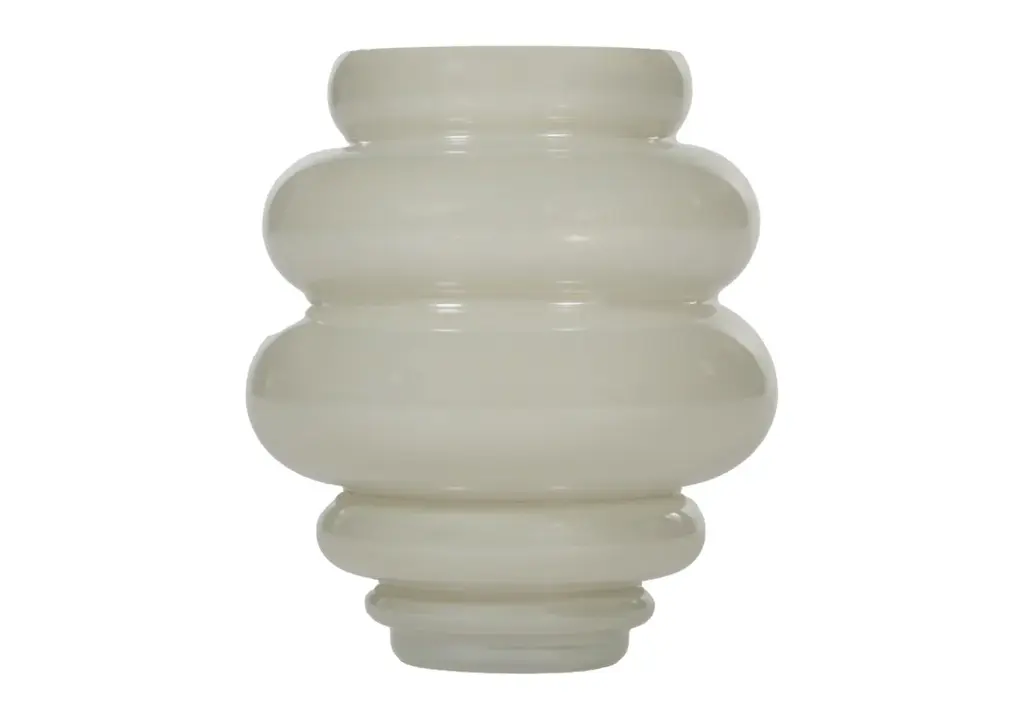 This tasteful glass vase features a curved, soft shape, giving a sense of sculpture and play. Its beautiful horizontal channels add visual texture, complemented by its versatile gray color. Available in two sizes, display alone or pair together for a collected look.