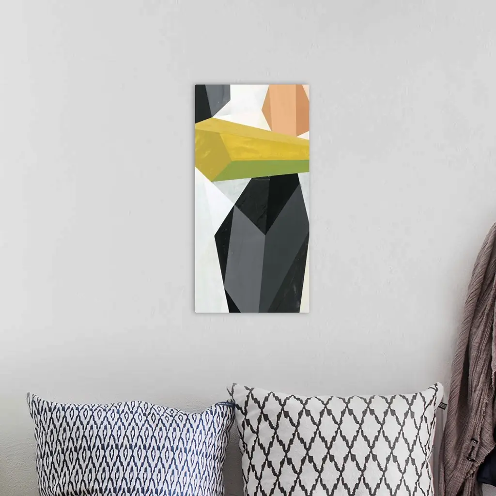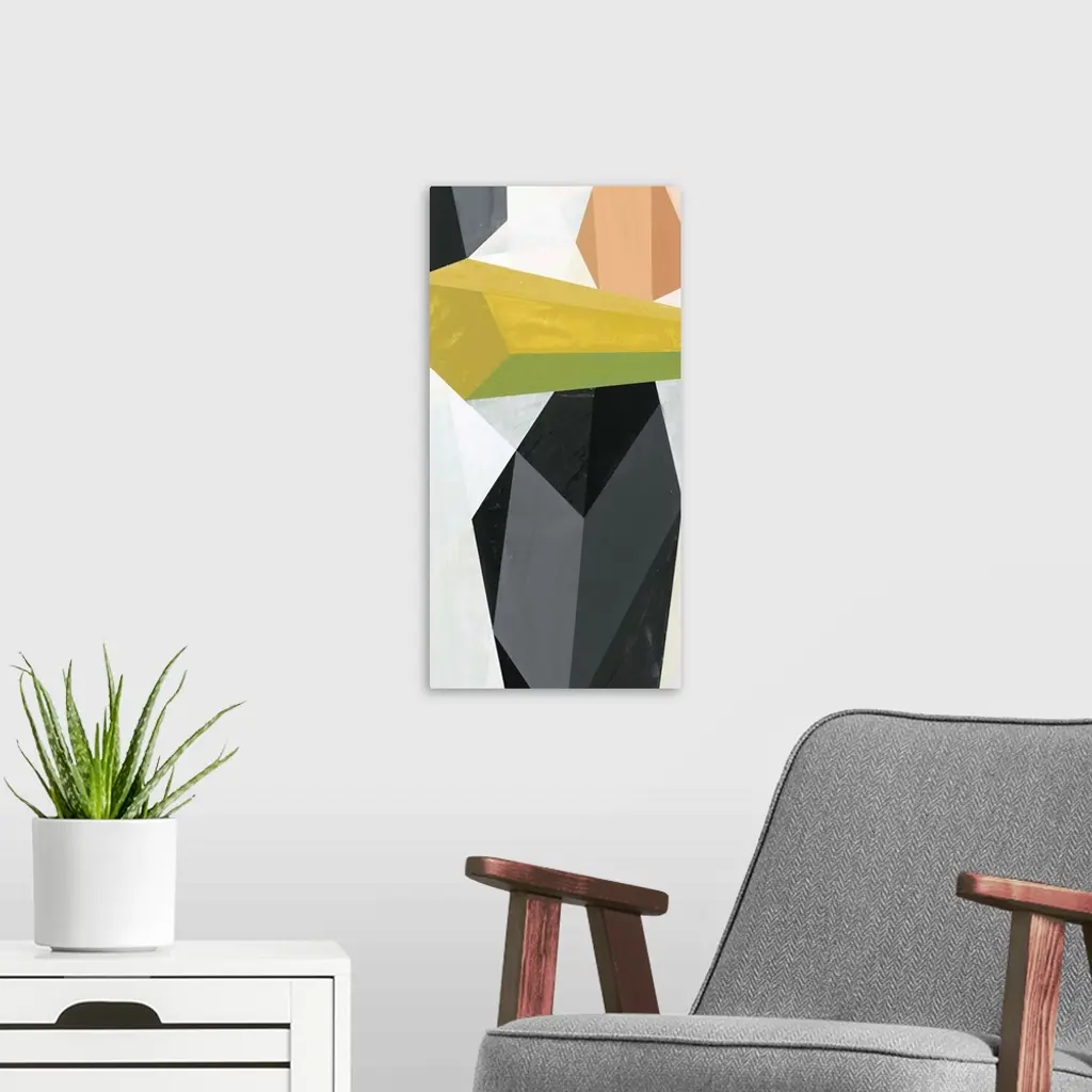 A contemporary abstract painting of geometric crystal-like shapes.