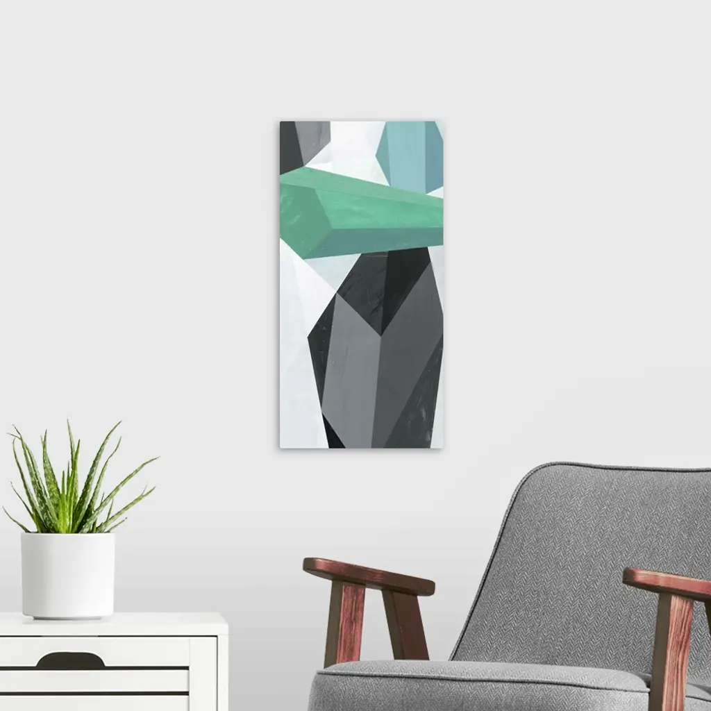 A contemporary abstract painting of geometric crystal-like shapes.