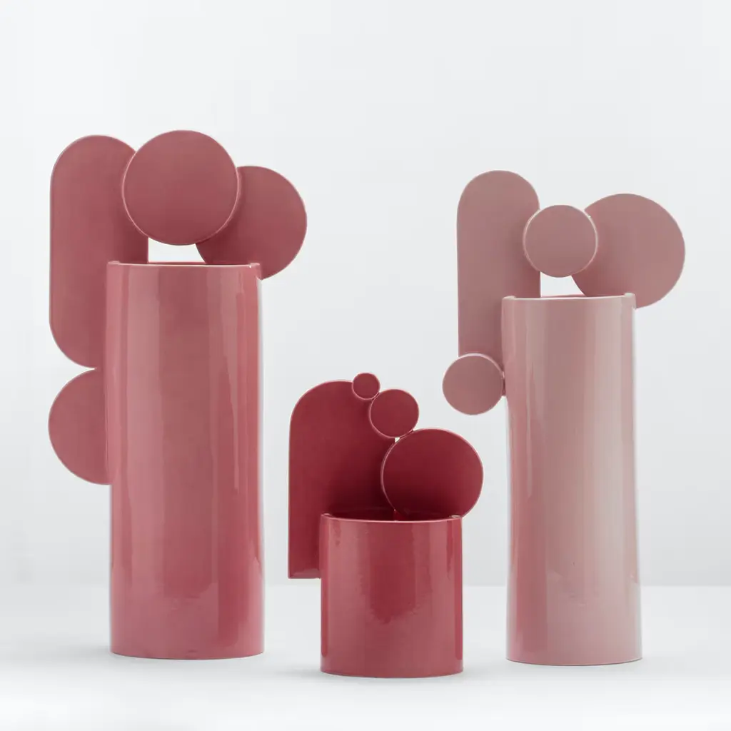 Lovers In Pink, a renowned artwork by Marc Chagall, serves as the inspiration for this polished ceramic vase from the Bubble Family Collection. Showcasing arched, circular shapes, the decorative elements enriching the vase's cylindrical body contribute to its organic dynamism, which adds an effortless touch of glamour to contemporary interior.