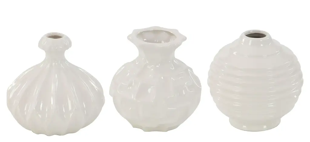 Crafted by Portuguese artisans, the Glow Vases are slip cast ceramic vases with textured white glaze finish. From a fashion forward perspective, Global Views offers accessories, furniture, statement lighting, and an assortment of rugs and mirrors to add beauty and joy to your home.