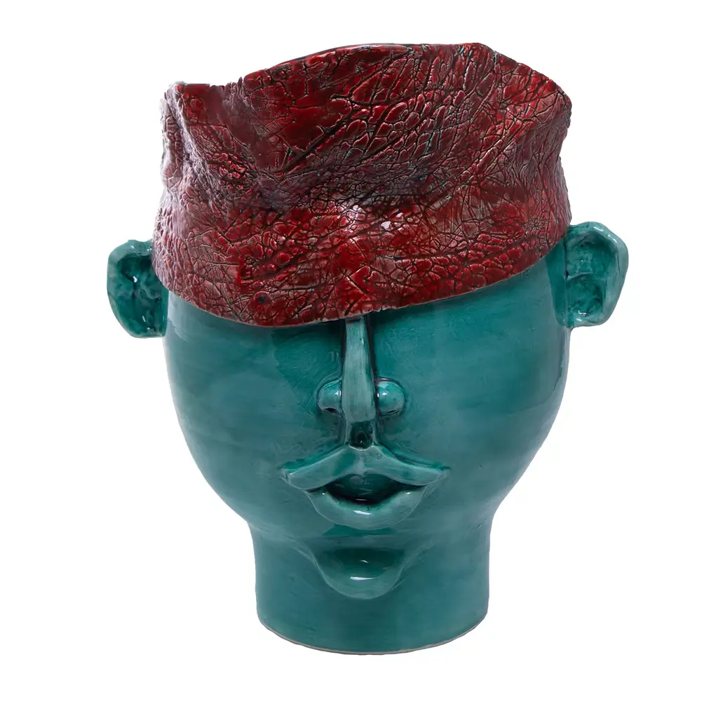 The CollectionThis collection offers ideas for contemporary décor through sophisticated revelations of art bound to the tradition of ceramics of Caltagirone, objets d’art that combine history and design.The extreme attention to details, supported by twenty years of experience of master craftsmen, is the company’s strength.The production technique hides secrets and art mixtures that make the product unique and exclusive. Mosche Bianche chooses to combine art and design to recall history through ceramic artworks in doing so, history revives, as in a fairy tale, an incredible civilization that is the sicilian culture.The moorish heads in ceramics, tribute to the beauty of ancient Sicily and its traditions, draw inspiration from a legend of love and jealousy set during the arabic domination in Sicily.A Story Of Love And JealousyThe legend tells that during the moorish domination in Sicily around 1000, in the arabic district of Palermo “al hàlisah” that a moor who, overwhelmed by a violent passion, declared his love to her. Noticed means “the chosen one”, a sweet girl the young girl charmed by his promise of love reciprocated. However, the moor was hiding a terrible truth. He already had a wife and children back home. So, when the girl discovered it, she decided to keep his beloved face with her forever. Without hesitation, she cut off his head and create a vase in which she planted a basil shoot. This aromatic plant has always had an aura of holiness as it represents the rulers’ plant. In this sense, that terrible act was justified by her absolute love to continue to take care of her beloved young moor. Every day in fact, the tears of the young heart-broken girl watered the plant of basil that kept thriving and flourishing. And all the neighbours, inebriated by that sentof the beautiful plant, started to commission clay vases shaped as a moor head.This piece is available with Crown or Without:Sizes: (D - H)With crownS 16 x 24 cm - 5.90 x 9.45 incM 26 x 40 cm - 10.23 x 15.74 incL 32 x 50 cm - 12.59 x 19.68 incWithout crownS 16 x 22 cm - 6.29 x 8.66 incM 26 x 35 cm - 10.23 x 13.77 incL 32 x 46 cm - 12.59 x 18.11 inc.