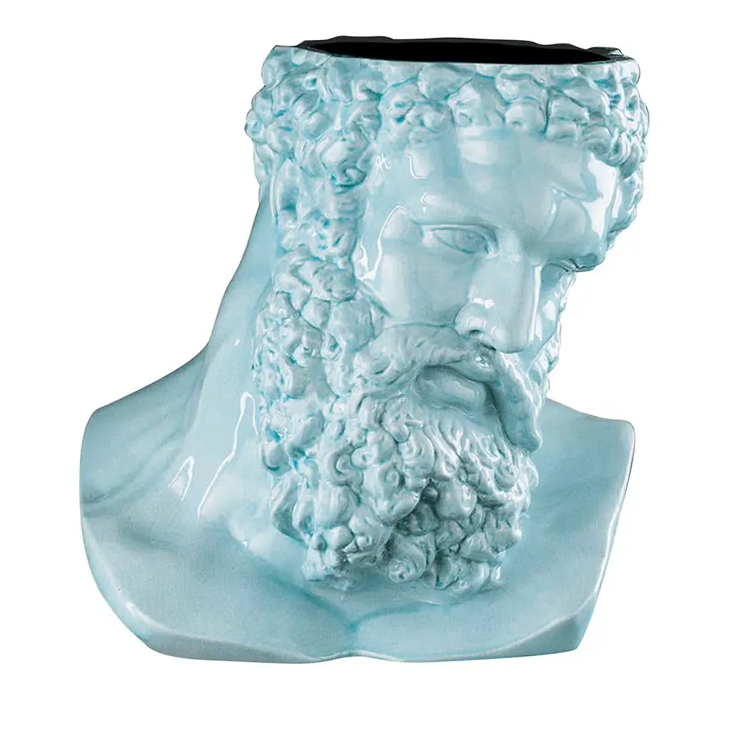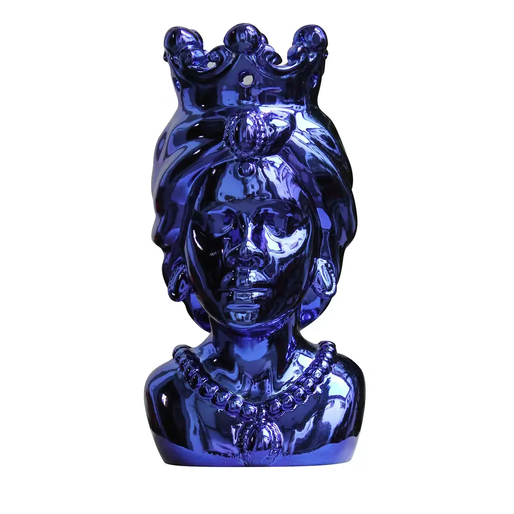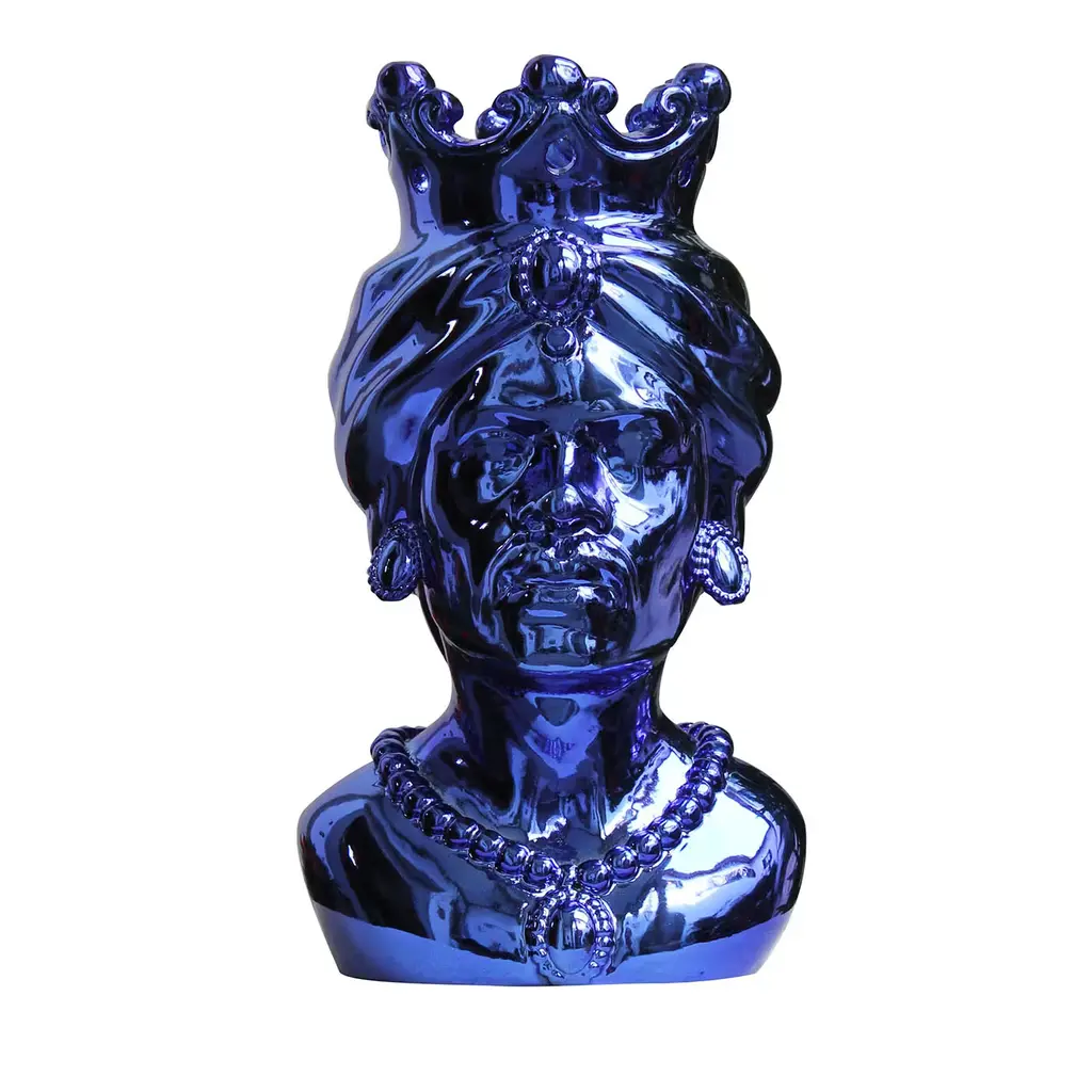 The CollectionThis collection offers ideas for contemporary décor through sophisticated revelations of art bound to the tradition of ceramics of Caltagirone, objets d’art that combine history and design.The extreme attention to details, supported by twenty years of experience of master craftsmen, is the company’s strength.The production technique hides secrets and art mixtures that make the product unique and exclusive. Mosche Bianche chooses to combine art and design to recall history through ceramic artworks in doing so, history revives, as in a fairy tale, an incredible civilization that is the sicilian culture.The moorish heads in ceramics, tribute to the beauty of ancient Sicily and its traditions, draw inspiration from a legend of love and jealousy set during the arabic domination in Sicily.A Story Of Love And JealousyThe legend tells that during the moorish domination in Sicily around 1000, in the arabic district of Palermo “al hàlisah” that a moor who, overwhelmed by a violent passion, declared his love to her. Noticed means “the chosen one”, a sweet girl the young girl charmed by his promise of love reciprocated. However, the moor was hiding a terrible truth. He already had a wife and children back home. So, when the girl discovered it, she decided to keep his beloved face with her forever. Without hesitation, she cut off his head and create a vase in which she planted a basil shoot. This aromatic plant has always had an aura of holiness as it represents the rulers’ plant. In this sense, that terrible act was justified by her absolute love to continue to take care of her beloved young moor. Every day in fact, the tears of the young heart-broken girl watered the plant of basil that kept thriving and flourishing. And all the neighbours, inebriated by that sentof the beautiful plant, started to commission clay vases shaped as a moor head.This piece is available with Crown or Without:Sizes: (D - H)With crownS 16 x 24 cm - 5.90 x 9.45 incM 26 x 40 cm - 10.23 x 15.74 incL 32 x 50 cm - 12.59 x 19.68 incWithout crownS 16 x 22 cm - 6.29 x 8.66 incM 26 x 35 cm - 10.23 x 13.77 incL 32 x 46 cm - 12.59 x 18.11 inc.