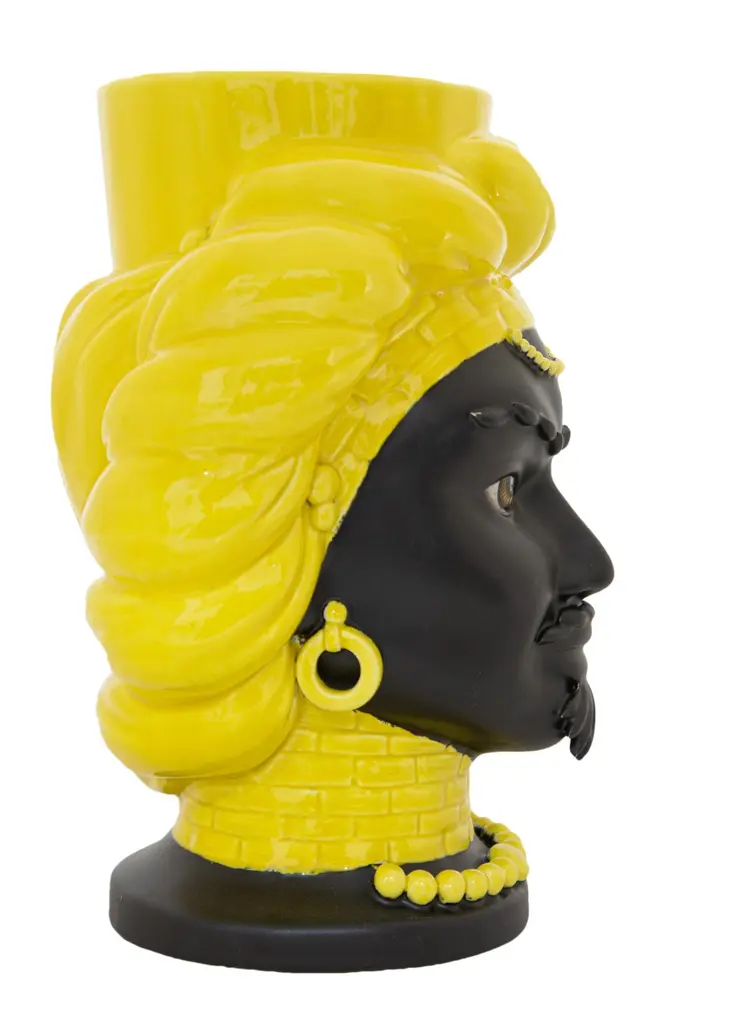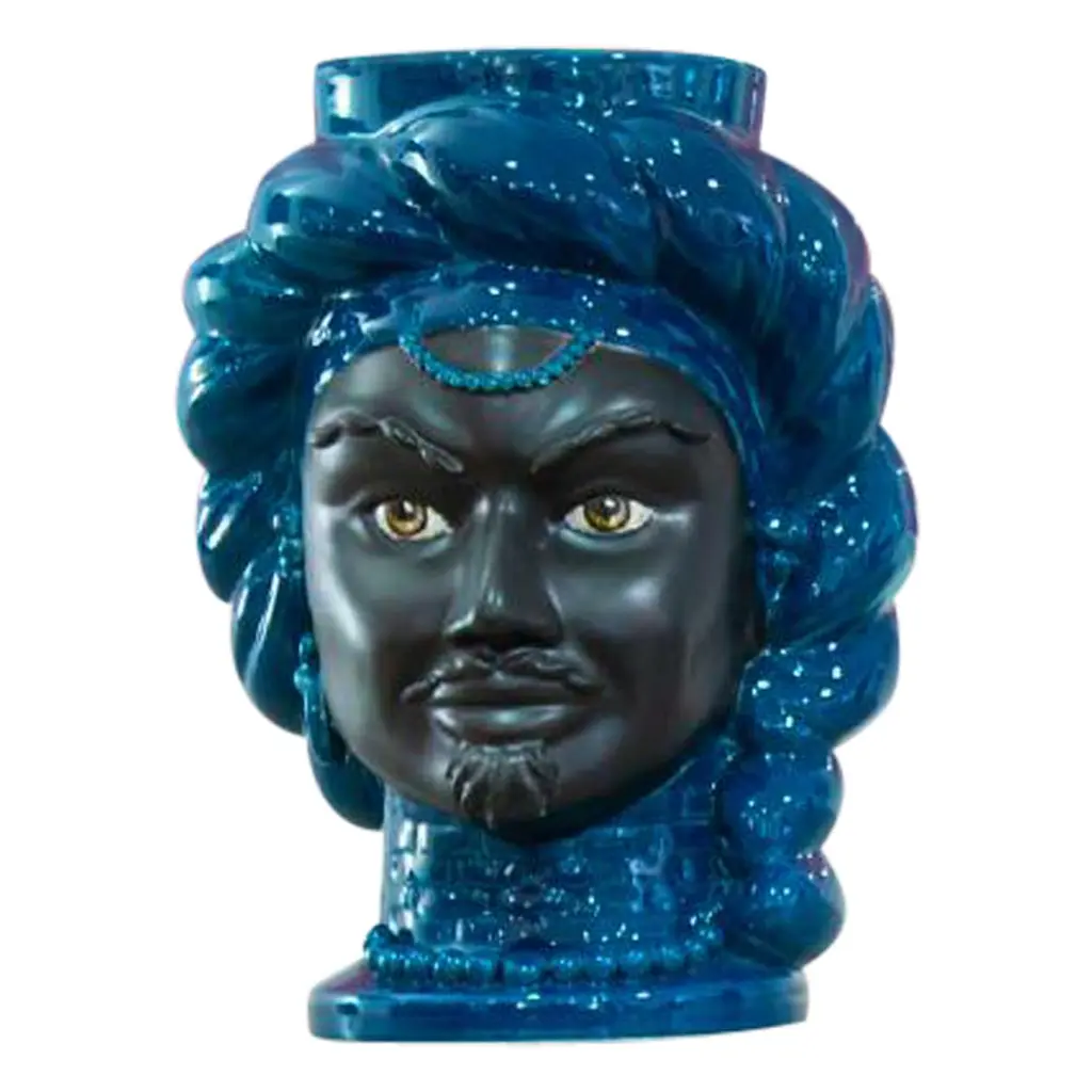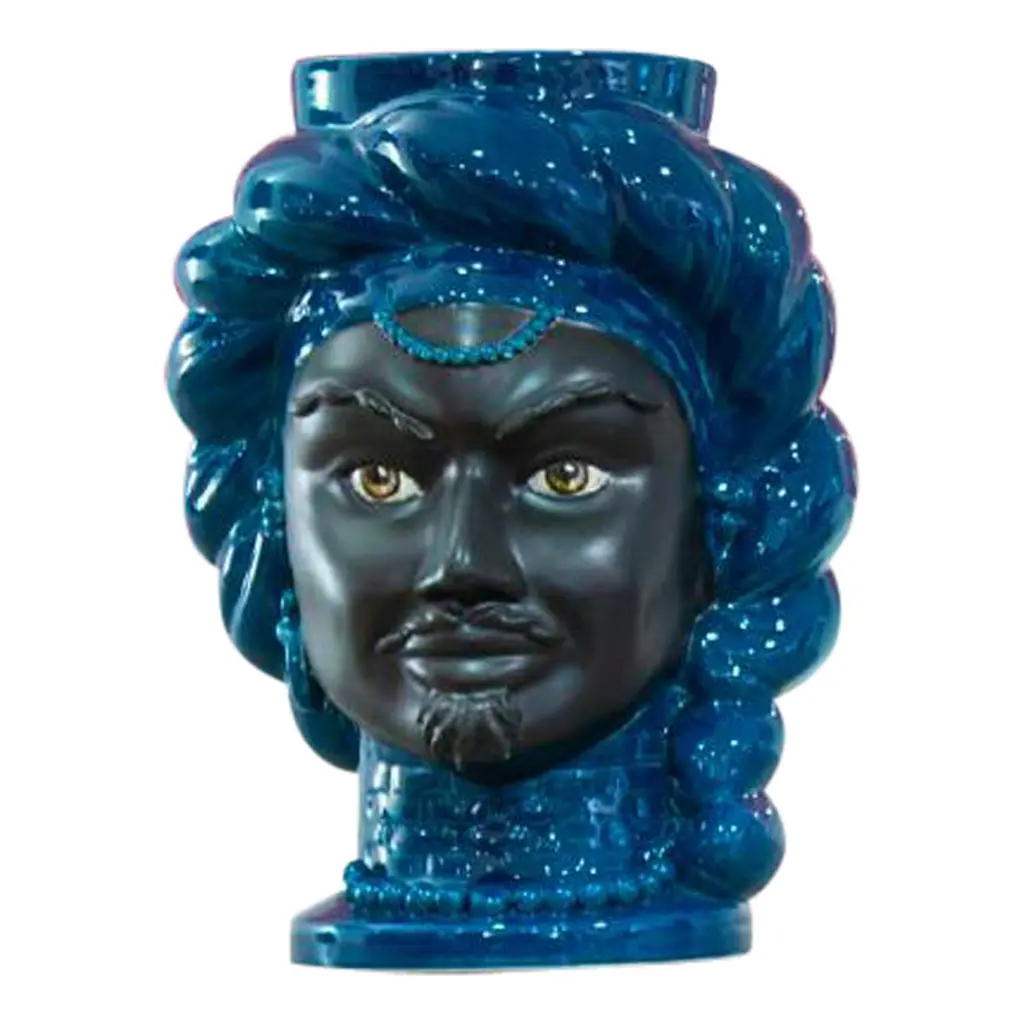 God E17, Man's Moorish Head, Handmade In Sicily, Luxury Vase, Size M, Bichrome