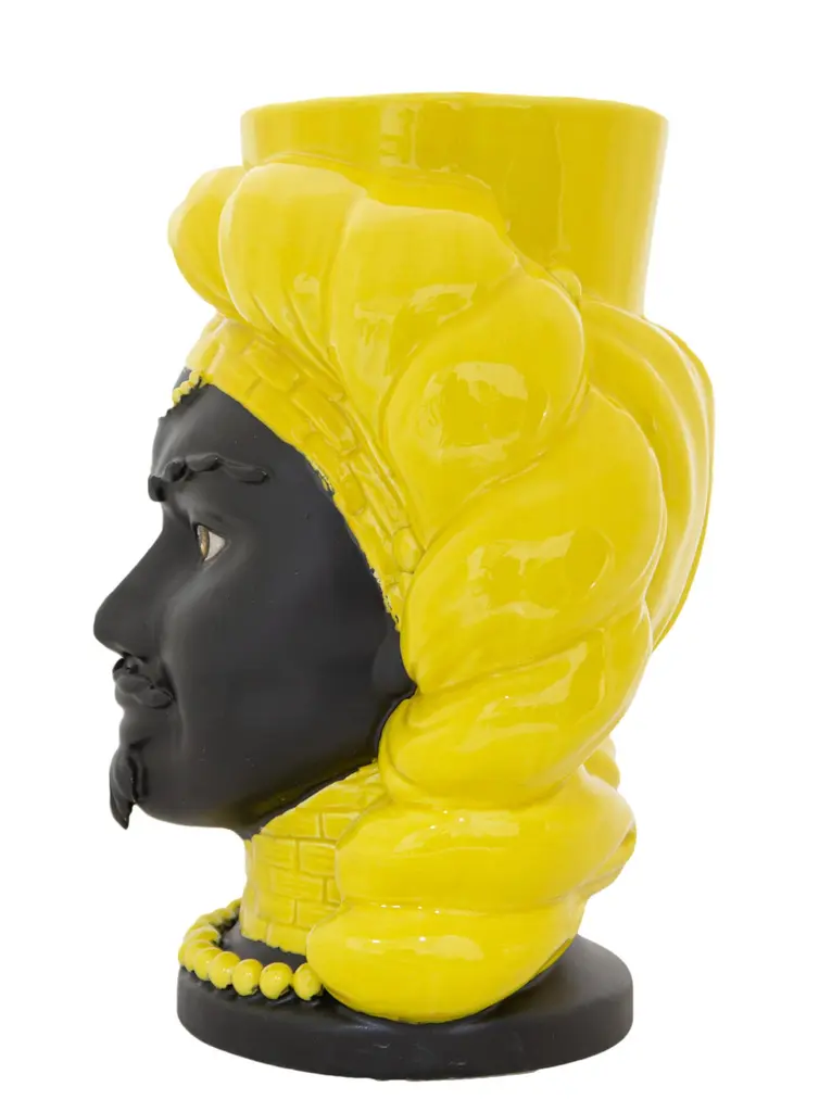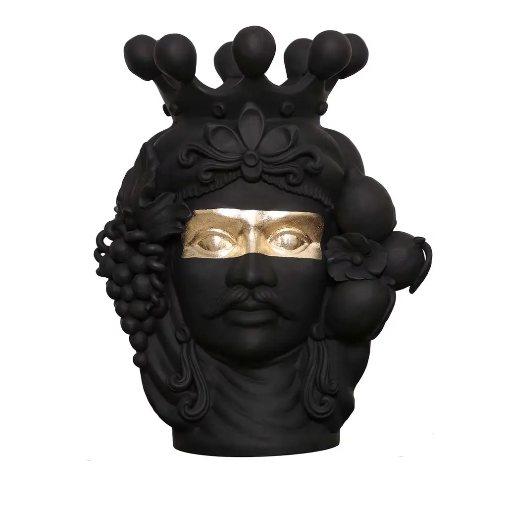 God E17, Man's Moorish Head, Handmade In Sicily, Luxury Vase, Size S, Bichrome