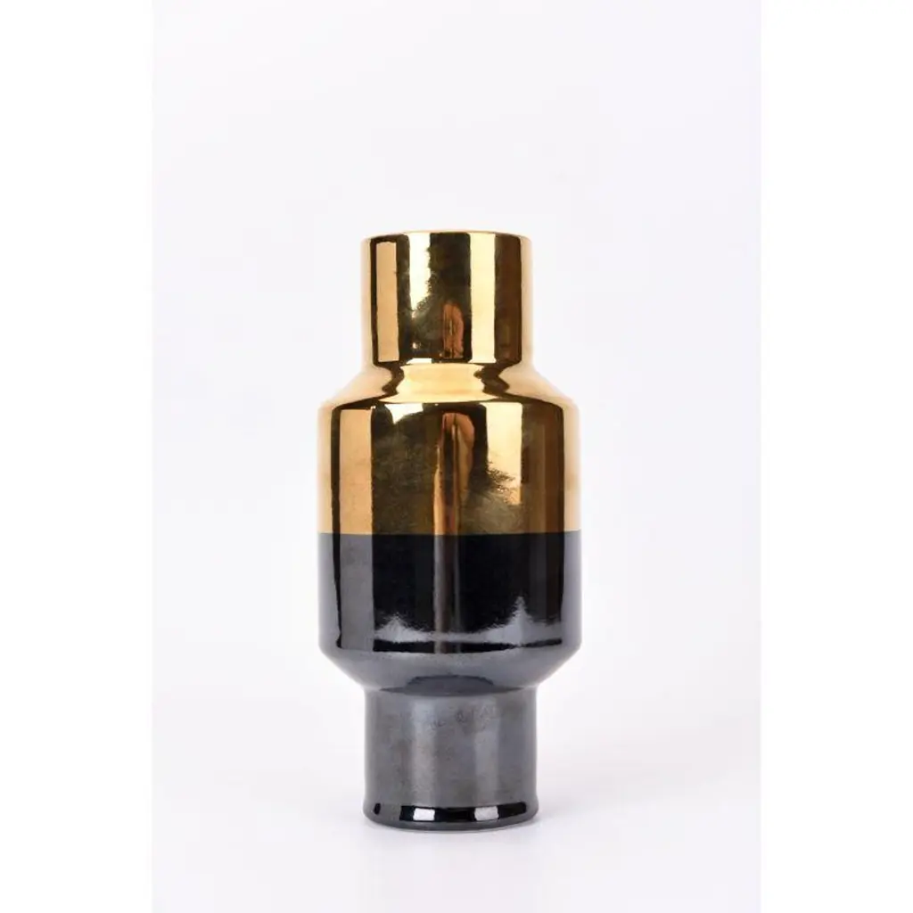 Gold and black short vase by WL CeramicsDesigner: Norman TrapmanMaterials: PorcelainDimensions: H23 x 11 cmAlso available in different colors and shapesAt WL Ceramics we make porcelain with passion. We are a family run company based in Jingdezhen, China, the birthplace of porcelain manufacturing. Since 1993, we have been producing decorative porcelain objects based on centuries of tradition and craftsmanship.While we have mastered many manufacturing techniques, we specialise in large wheel-thrown objects such as vases, planters and ceramic furniture. Together with our clients, we design and develop unique products. Whether it is in the pursuit of exclusive dinnerware or a giant porcelain vase, we love to inspire you and turn your ideas into a reality. In addition to working with interior architects, brands and designers, we produce a collection of our own that may be ordered as is or customised to one’s own specifications.