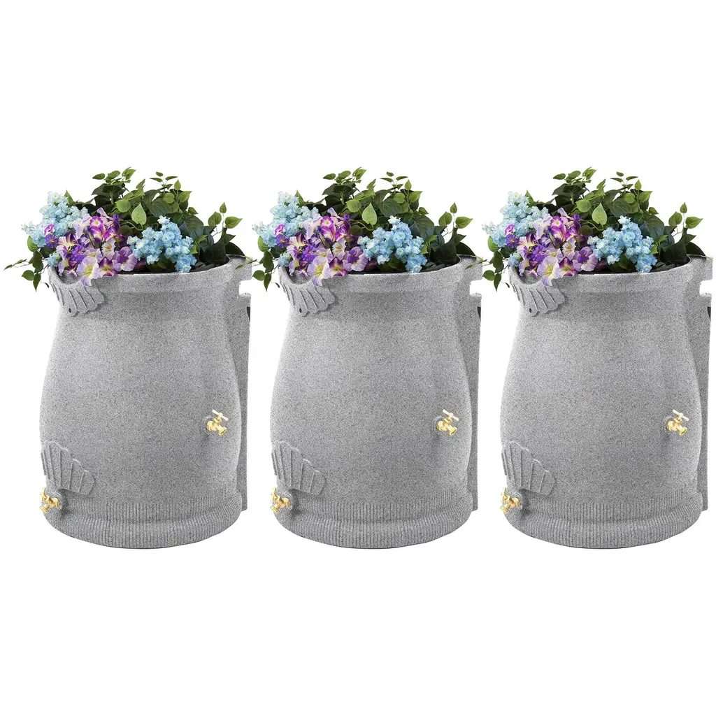 Good Ideas Rain Wizard 50 Gallon Plastic Rain Barrel Urn, Light Granite (3 Pack) - 17 - 17