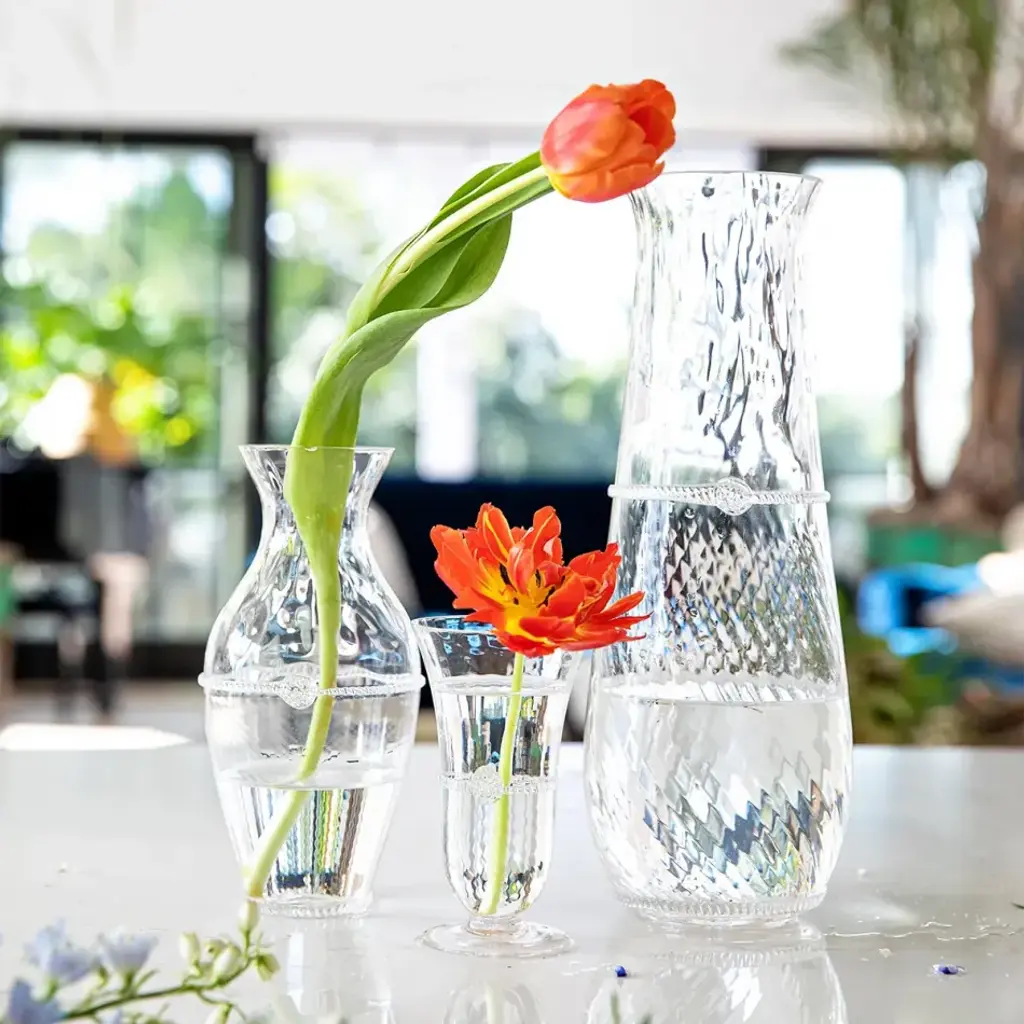 A versatile vessel makes a divine gift for those who treasure life's little luxuries. Sweetly shaped and boasting a single thread with signature berry, this vase is the perfect size for a statement bouquet of stemmed roses. Based in Connecticut, Juliska is committed to bringing elegant European design into our modern homes. Since its founding in 2001, when David and Capucine Gooding began by working with artisans outside of Prague to reproduce antique Bohemian glass pieces, every piece from Juliska has shared a rich heritage spanning six centuries of European design. Juliska's creations are timeless, romantic and effortlessly chic.