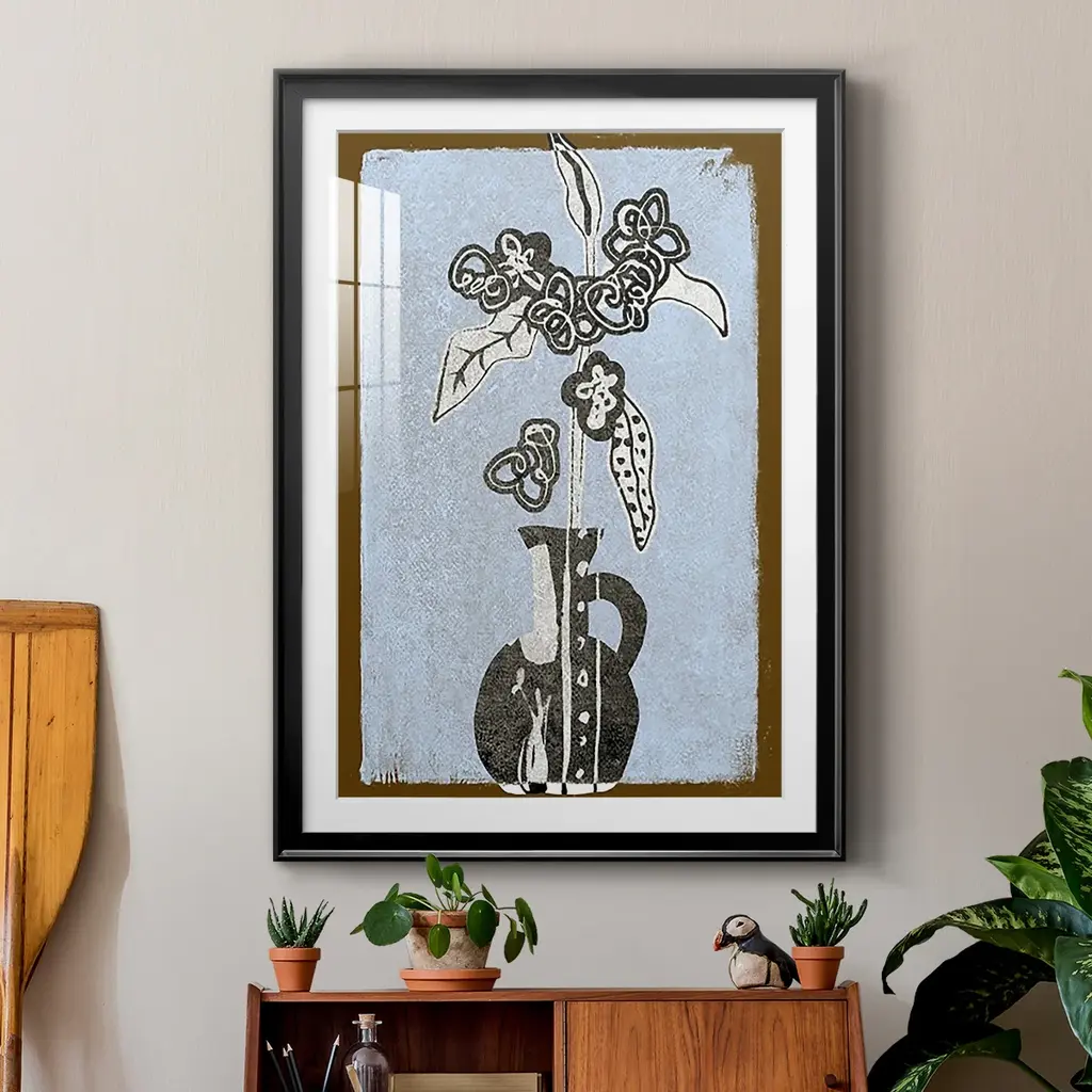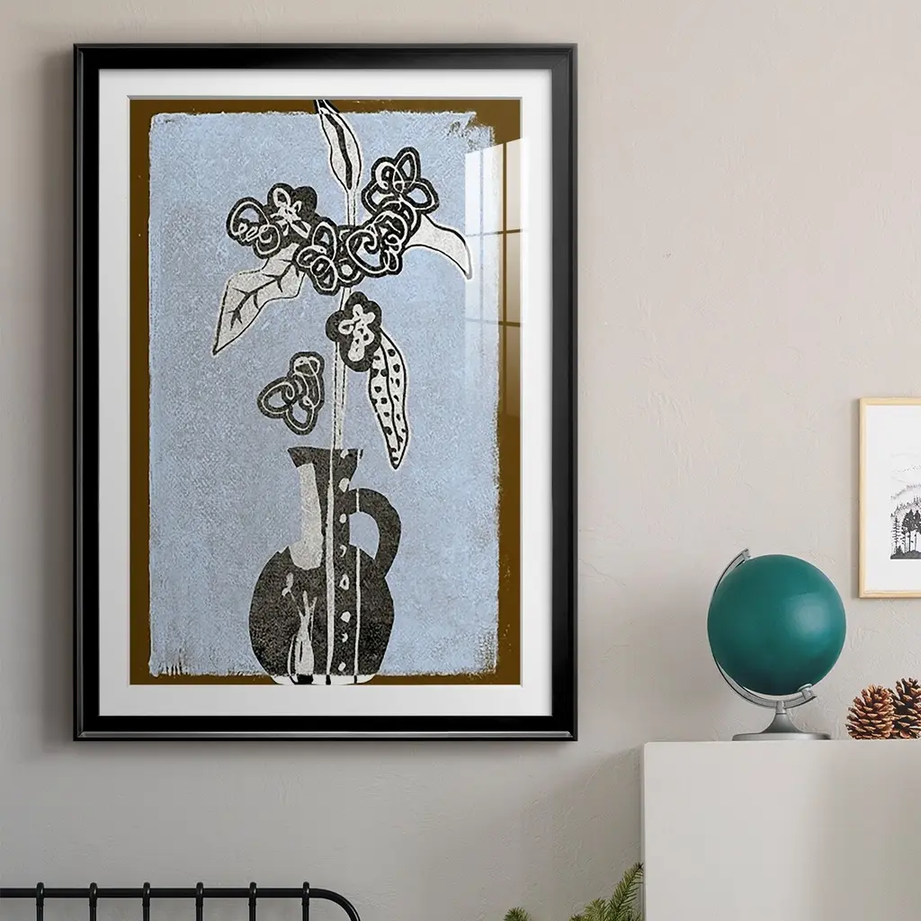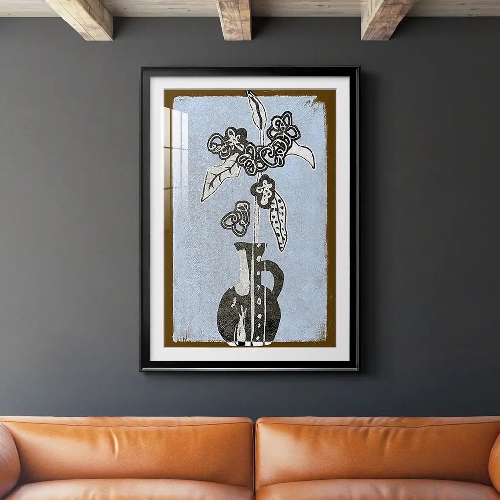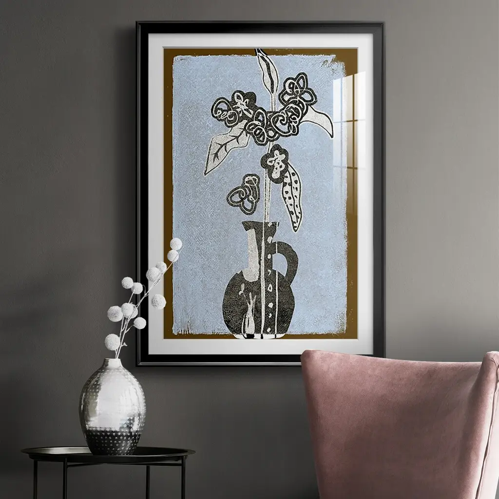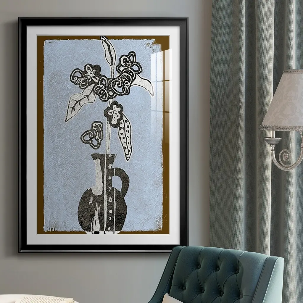 Graphic Flowers in Vase I Premium Framed Print - Ready to Hang A Premium Framed Print created to last. Framed in distressed wood and available in an array of sizes and colors Featuring a beveled a solid wood stretcher bar, each piece comes ready to hand 4 SIZES AVAILABLE 30.5''X42.5'' - Overall Size 26.5'X36.5'' - Overall Size 22.5''x30.5'' - Overall Size 18.5''x24.5'' - Overall Size Each piece is made to order. Each piece comes with hanging hardware. Made in the USA Ready to Hang Giclee Paper Print Acrylic Glass Beveled Matt Board