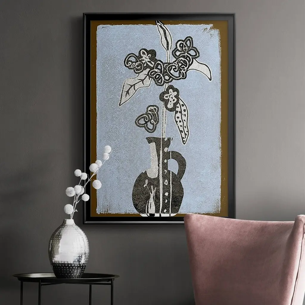 Graphic Flowers in Vase I Premium Framed Print - Ready to Hang A Premium Framed Print created to last. Framed in distressed wood and available in an array of sizes and colors Featuring a beveled a solid wood stretcher bar, each piece comes ready to hand 4 SIZES AVAILABLE 30.5''X42.5'' - Overall Size 26.5'X36.5'' - Overall Size 22.5''x30.5'' - Overall Size 18.5''x24.5'' - Overall Size Each piece is made to order. Each piece comes with hanging hardware. Made in the USA Ready to Hang
