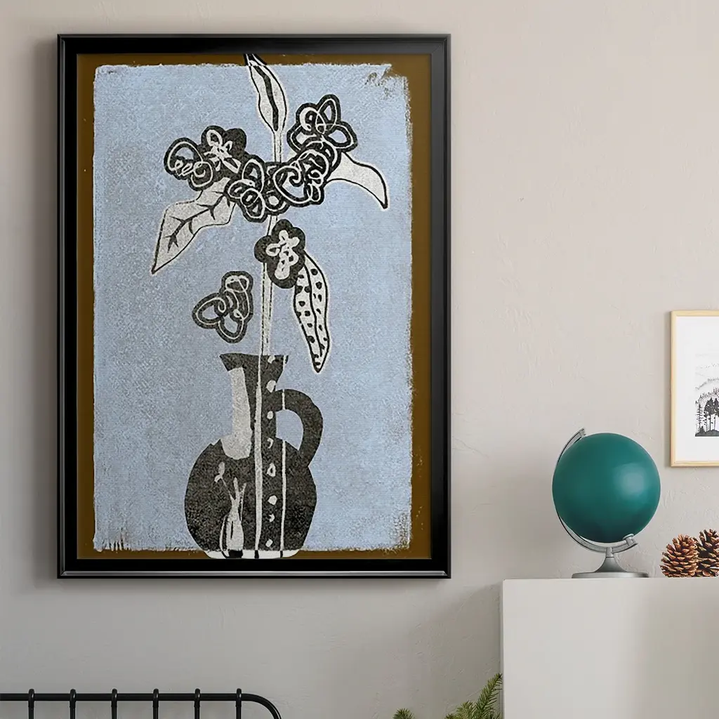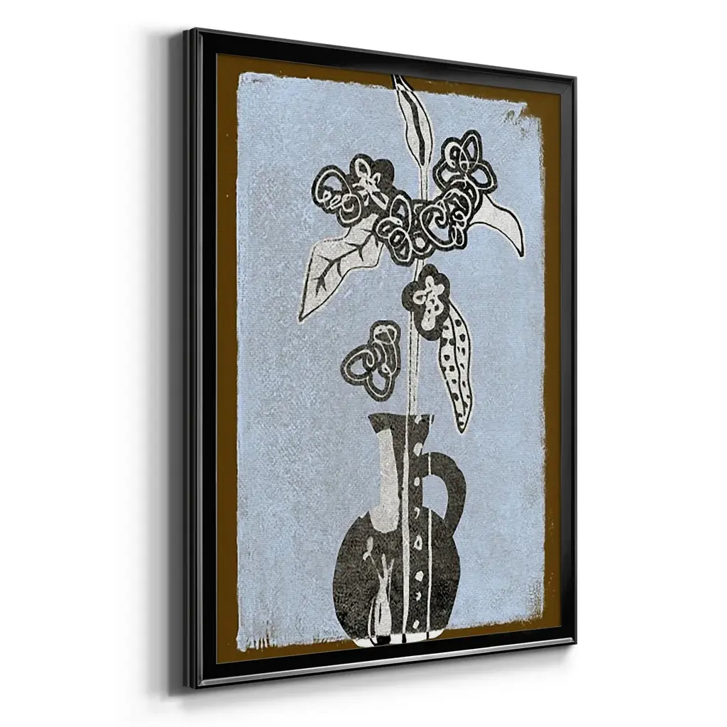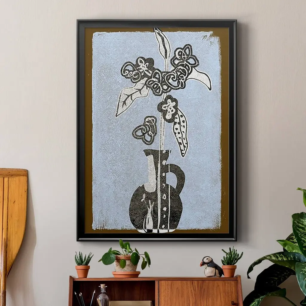 Graphic Flowers in Vase I Premium Framed Print - Ready to Hang A Premium Framed Print created to last. Framed in distressed wood and available in an array of sizes and colors Featuring a beveled a solid wood stretcher bar, each piece comes ready to hand 4 SIZES AVAILABLE 30.5''X42.5'' - Overall Size 26.5'X36.5'' - Overall Size 22.5''x30.5'' - Overall Size 18.5''x24.5'' - Overall Size Each piece is made to order. Each piece comes with hanging hardware. Made in the USA Ready to Hang